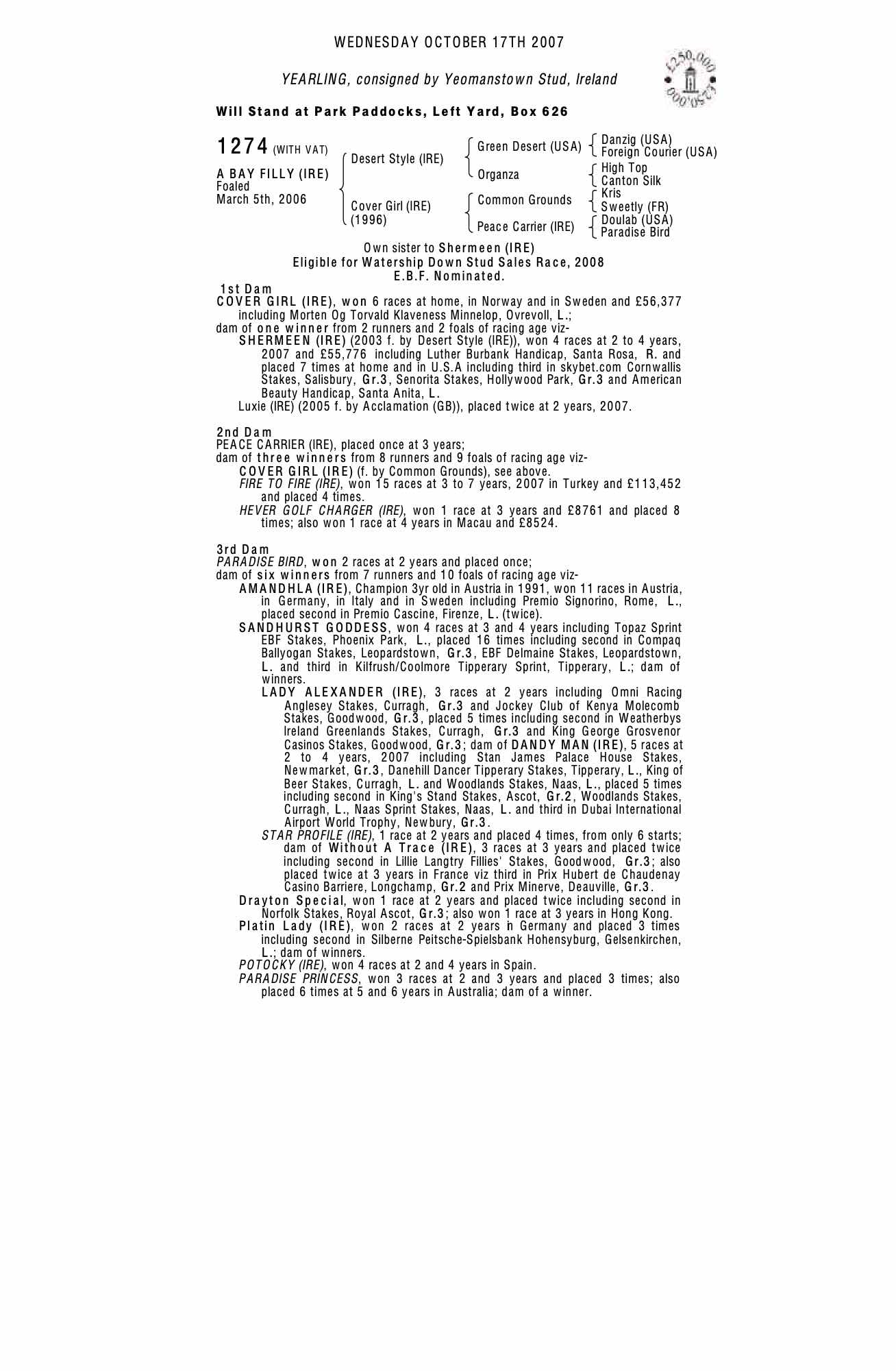 October Yearling Sale, Book 2 2006 lot 1008 F. by Acclamation (GB) 2005, Yeomanstown Stud, Ireland=>Bobby O'Ryan 48,000 gns