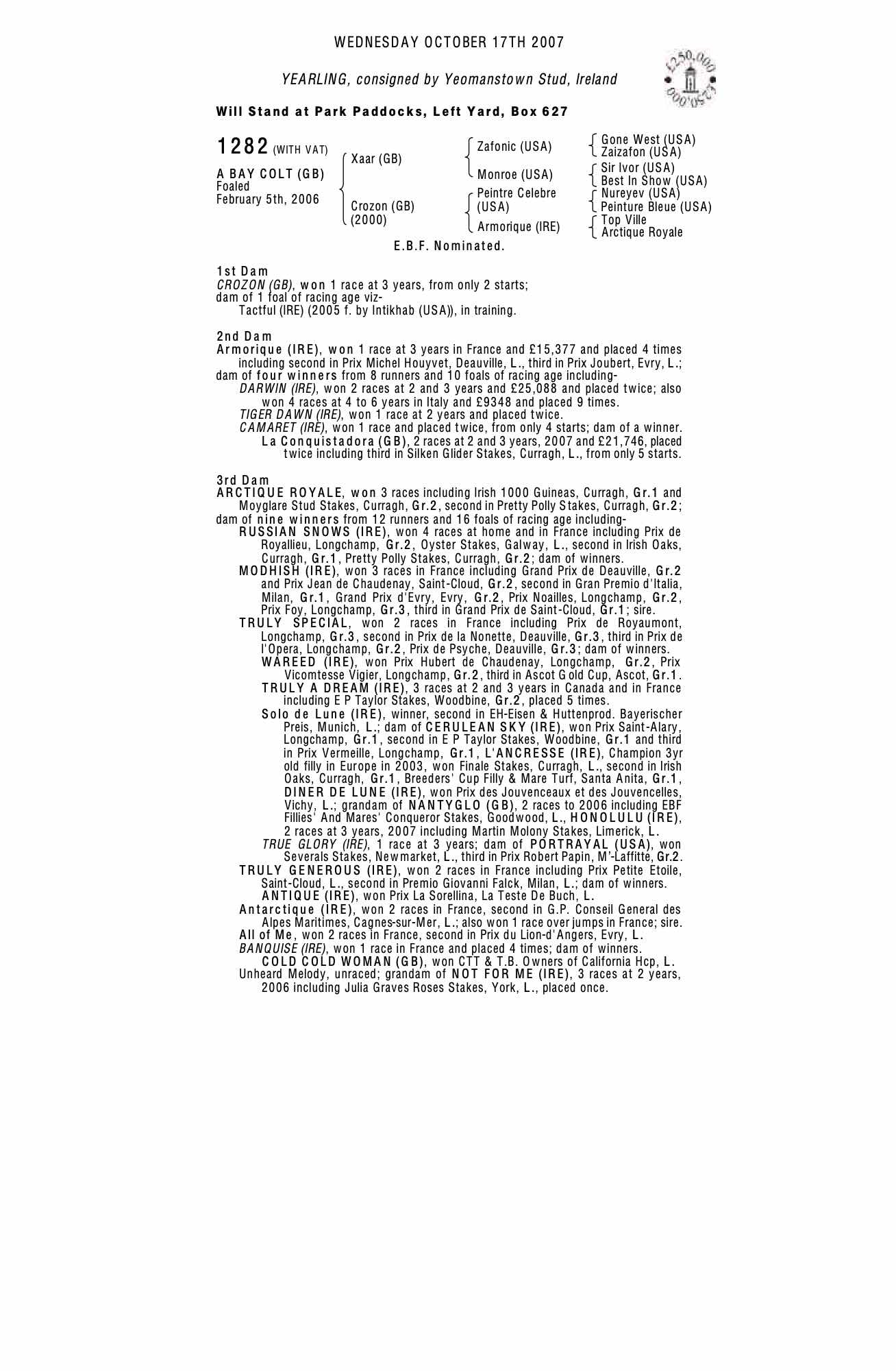 Consignor: Yeomanstown Stud, Ireland