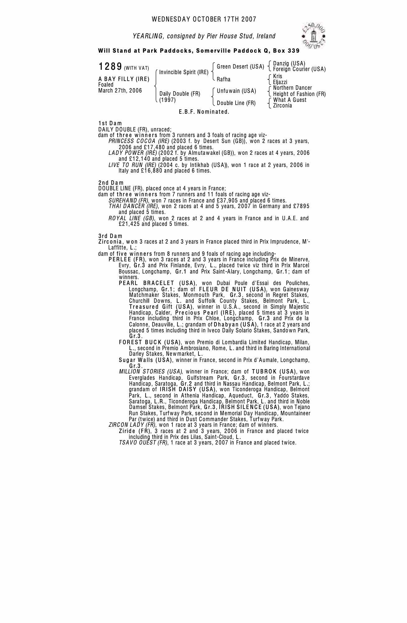 Consignor: Pier House Stud, Ireland