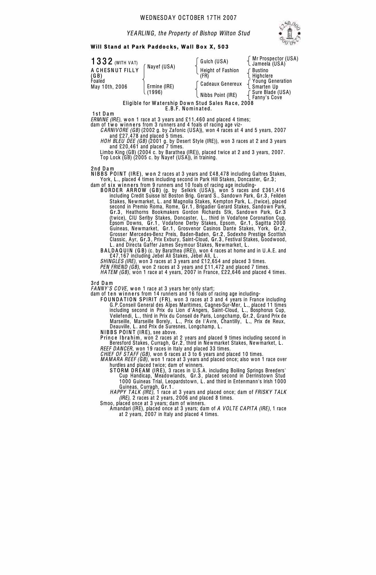 October Yearling Sale, Book 1 2008 lot 501 C. 2007, Bishop Wilton Stud=>BBA Ireland 85,000 gns