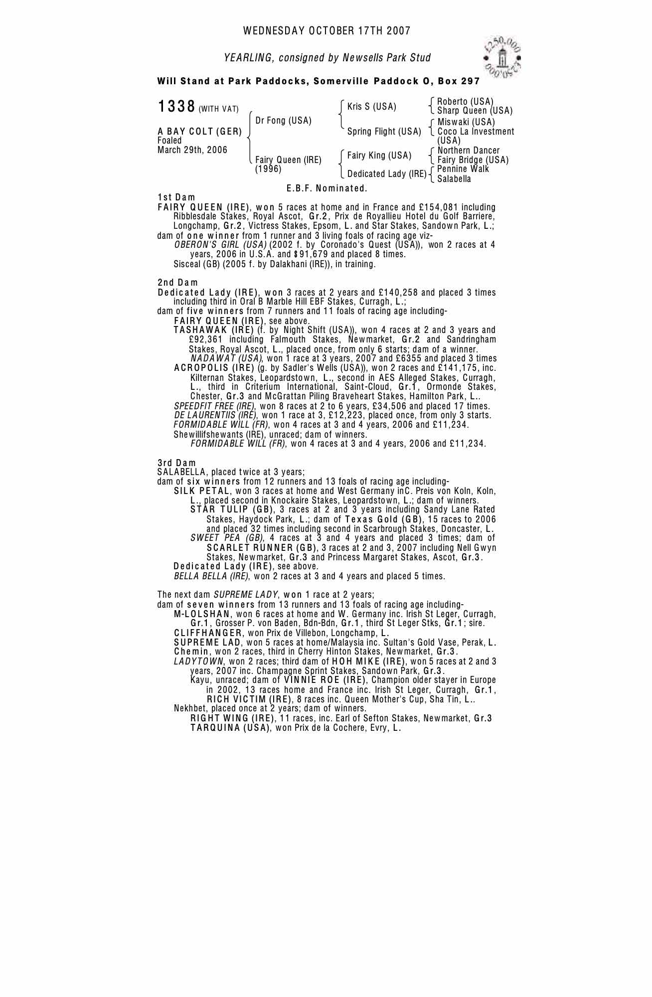 October Yearling Sale, Book 2 2009 lot 1140 F. by Dalakhani (IRE) 2008, Newsells Park Stud Ltd.=>Litex Commerce AD 87,000 gns
