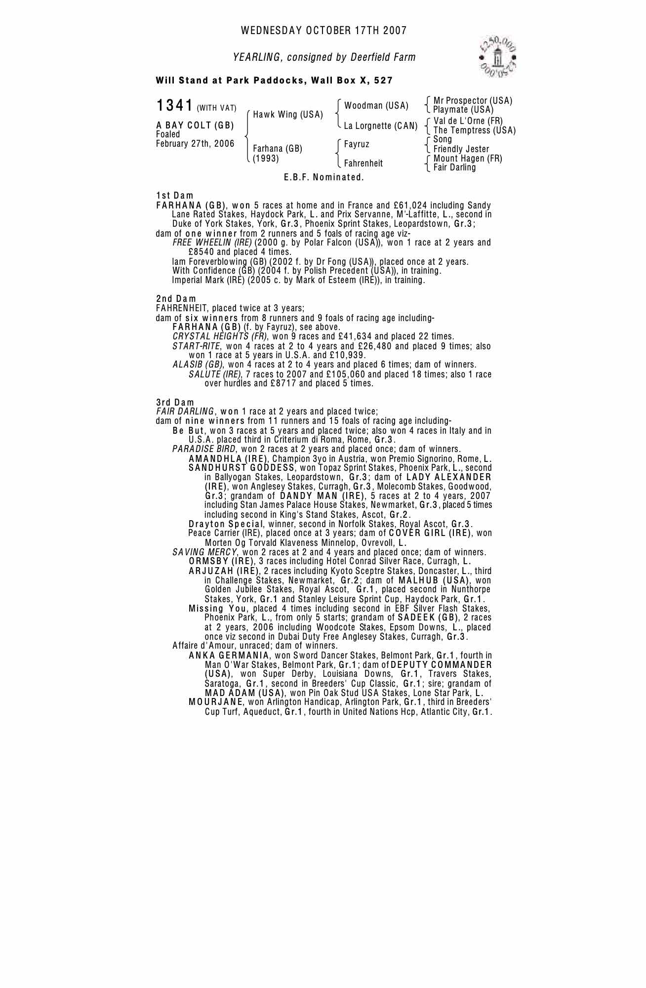 October Yearling Sale, Book 2 2005 lot 1035 F. by Polish Precedent (USA) 2004, Deerfield Farm=>Suzanne Roberts 10,000 gns