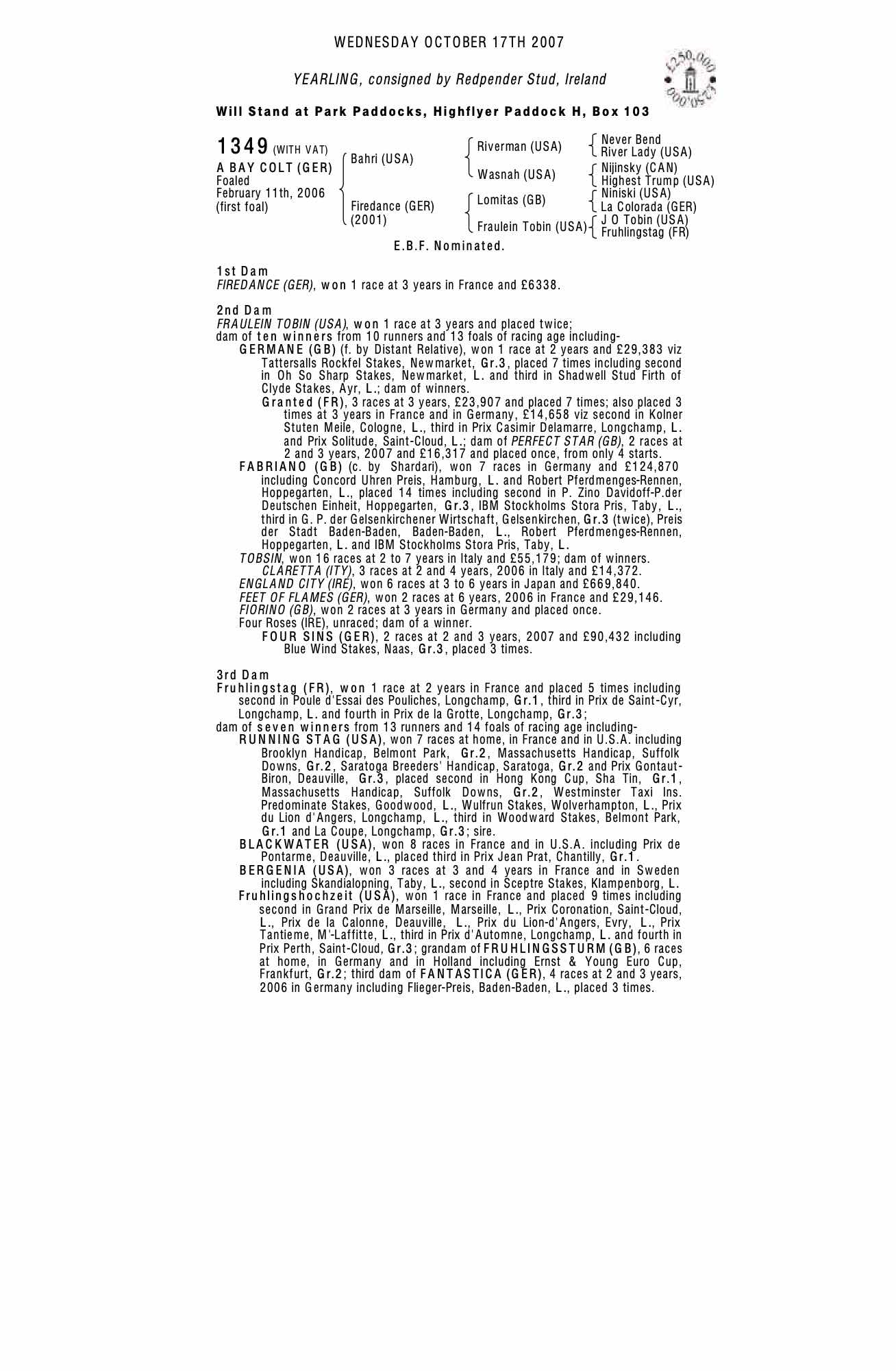 October Yearling Sale, Book 2 2009 lot 1155 C. by Highest Honor (FR) 2008, Tally-Ho Stud, Ireland=>Andrew Oliver 6,500 gns