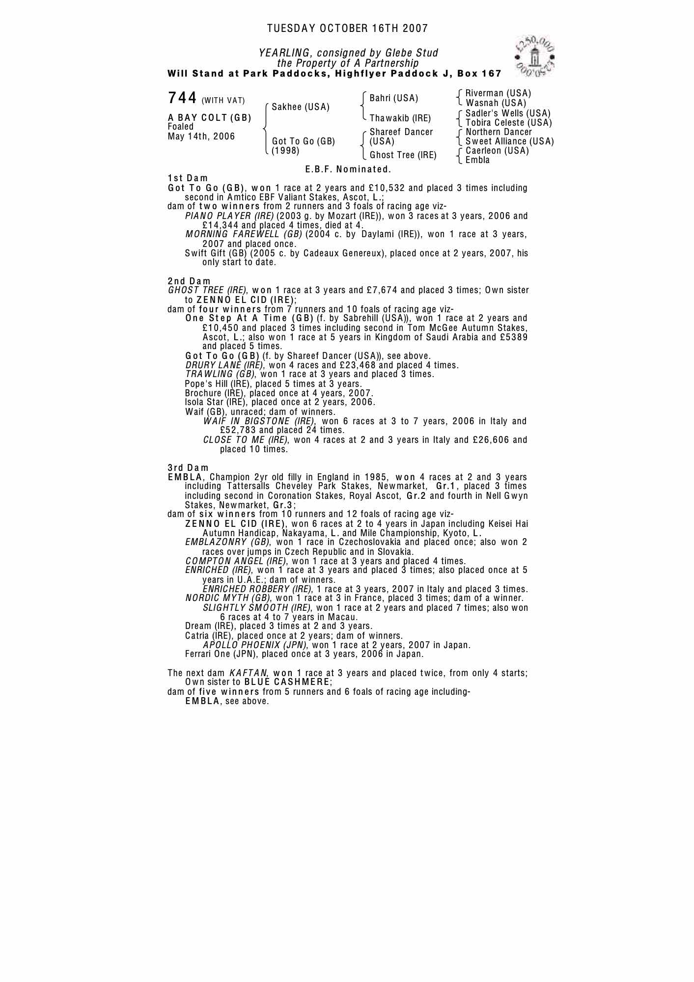 December Yearling Sale 2006 lot 51 C. by Cadeaux Genereux 2005, Glebe Stud=>McKeever St Lawrence 26,000 gns
