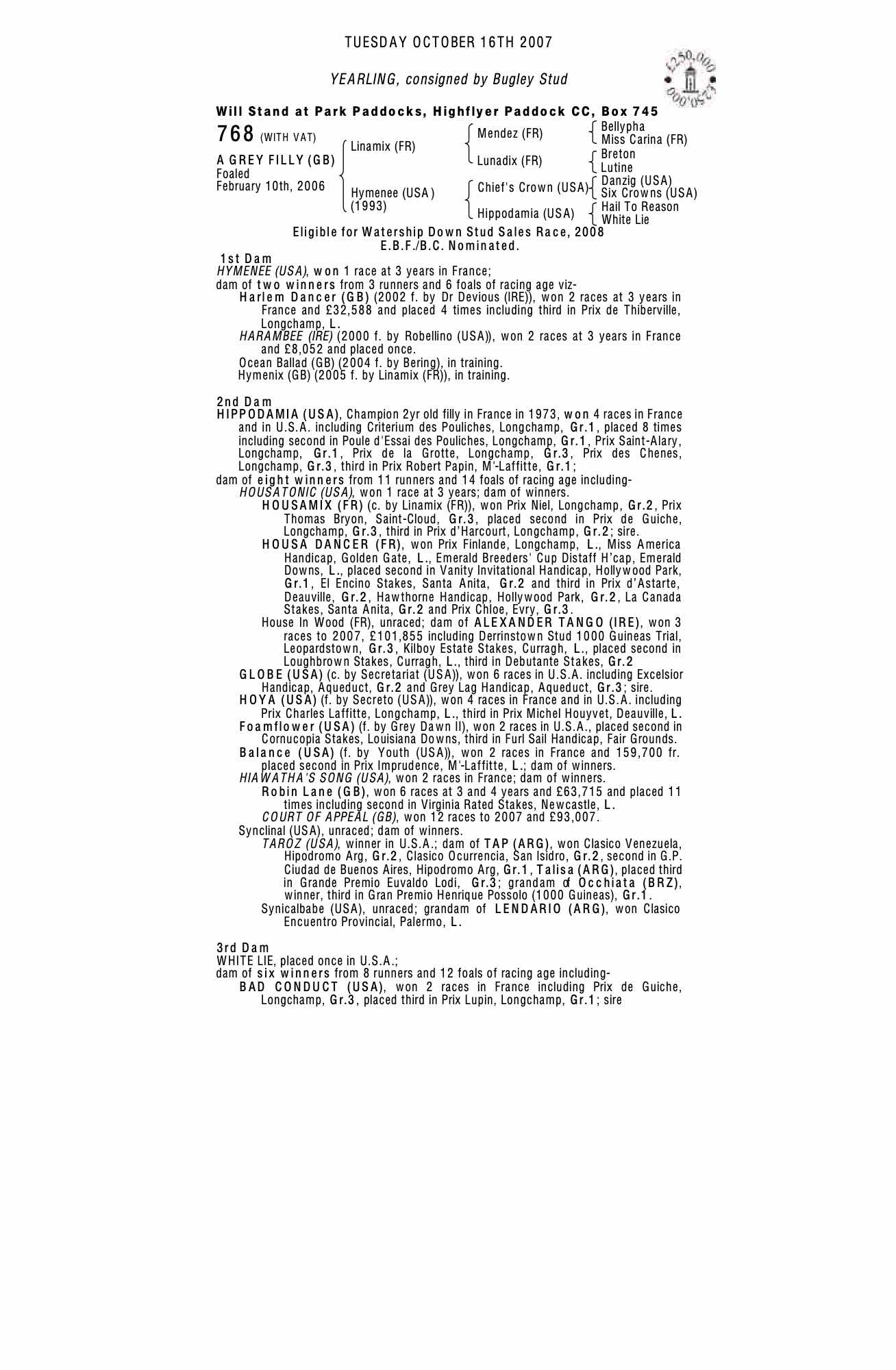 October Yearling Sale, Book 2 2008 lot 1404 F. by Dubawi (IRE) 2007, John Osborne, Agent=>Rabbah Bloodstock 38,000 gns