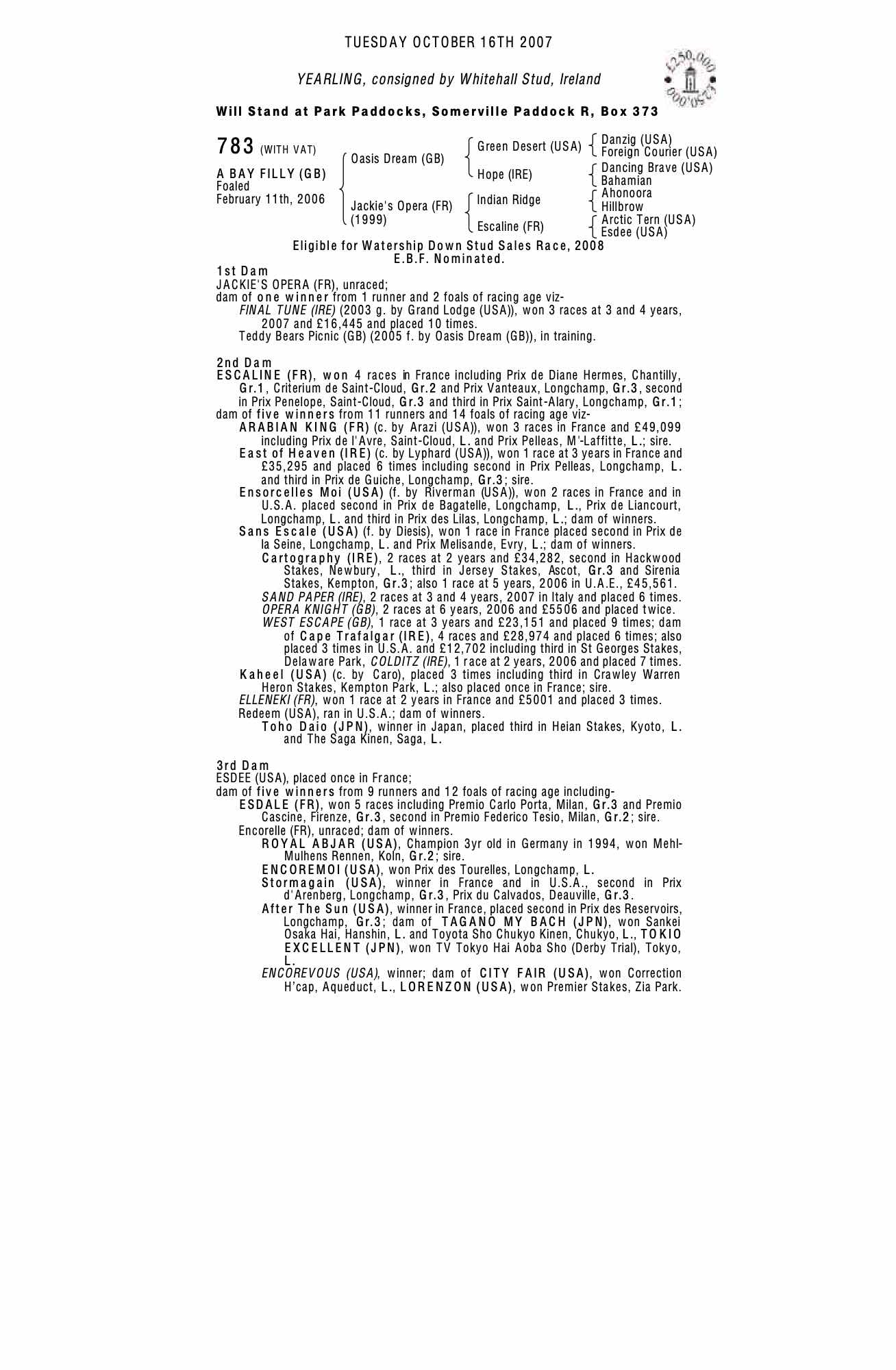 July Sale 2008 lot 703 Teddy Bears Picnic (GB) (F.), Bedford House Stables=>Cormac McCormack Bloodstock 28,000 gns