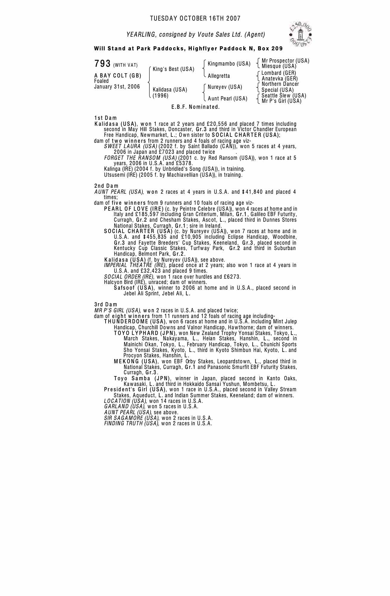 October Yearling Sale, Book 1 2006 lot 221 F. by Machiavellian (USA) 2005, Glenvale Stud, Ireland (Agent)=>JS Company 120,000 gns