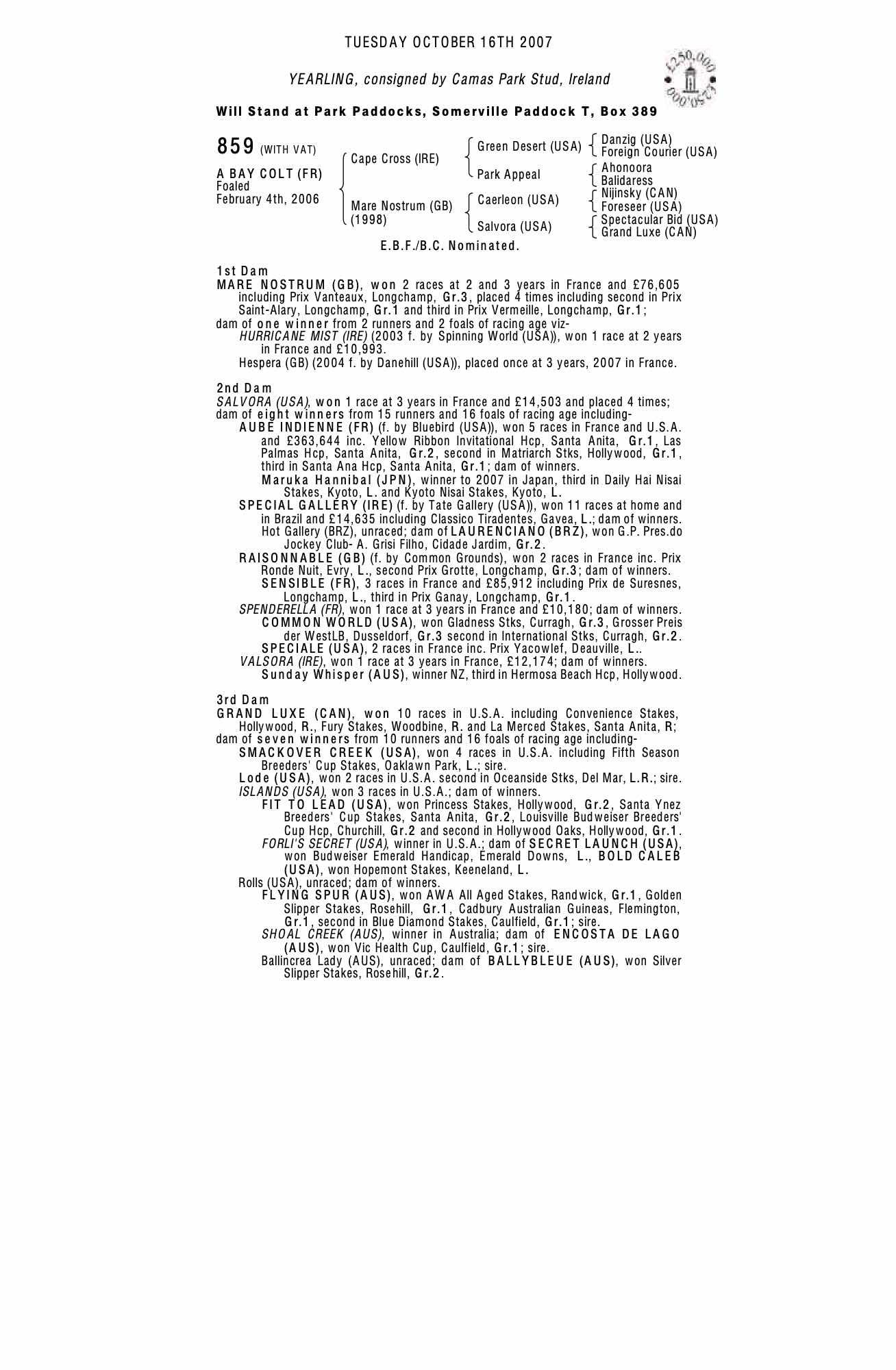 December Mare Sale 2006 lot 1645 Hurricane Mist (IRE) (F. by Spinning World (USA)), Haras de Fresnay-le-Buffard, France=>Paul Moroney Bloodstock 115,000 gns