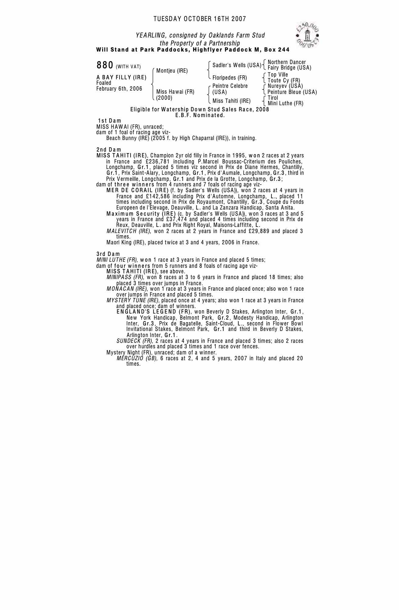 October Yearling Sale, Book 1 2006 lot 317 F. by High Chaparral (IRE) 2005, Marston Stud=>BBA Ireland 25,000 gns