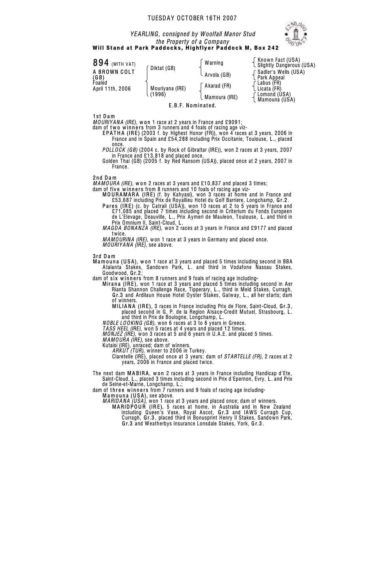 December Foal Sale 2006 lot 835, Clover Leaf Stud=>Woolfall Manor Stud 32,000 gns