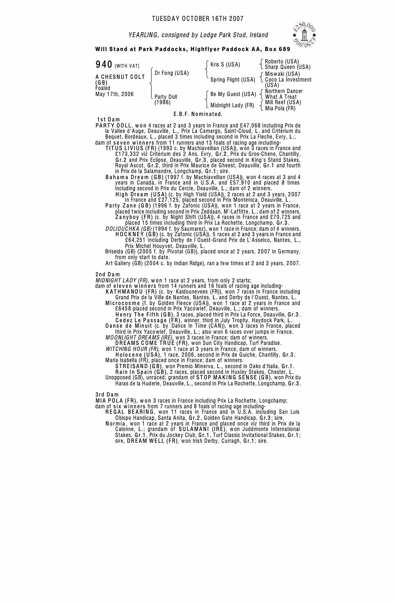 October Yearling Sale, Book 2 2011 lot 944 F. by Notnowcato (GB) 2010, Watership Down Stud=>Agence FIPS 47,000 gns