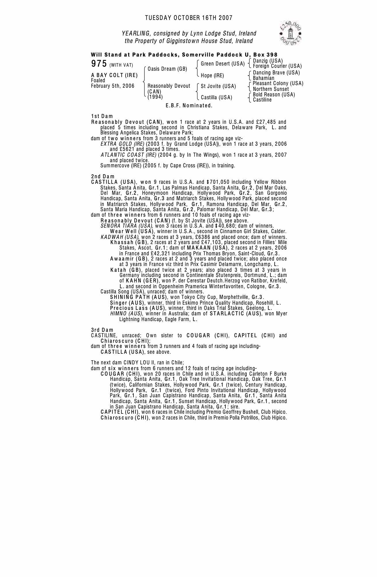 Autumn Horses in Training Sale 2007 lot 1217 Atlantic Coast (IRE) (G. by In The Wings), Kingsley House Stables=>Vendor 32,000 gns