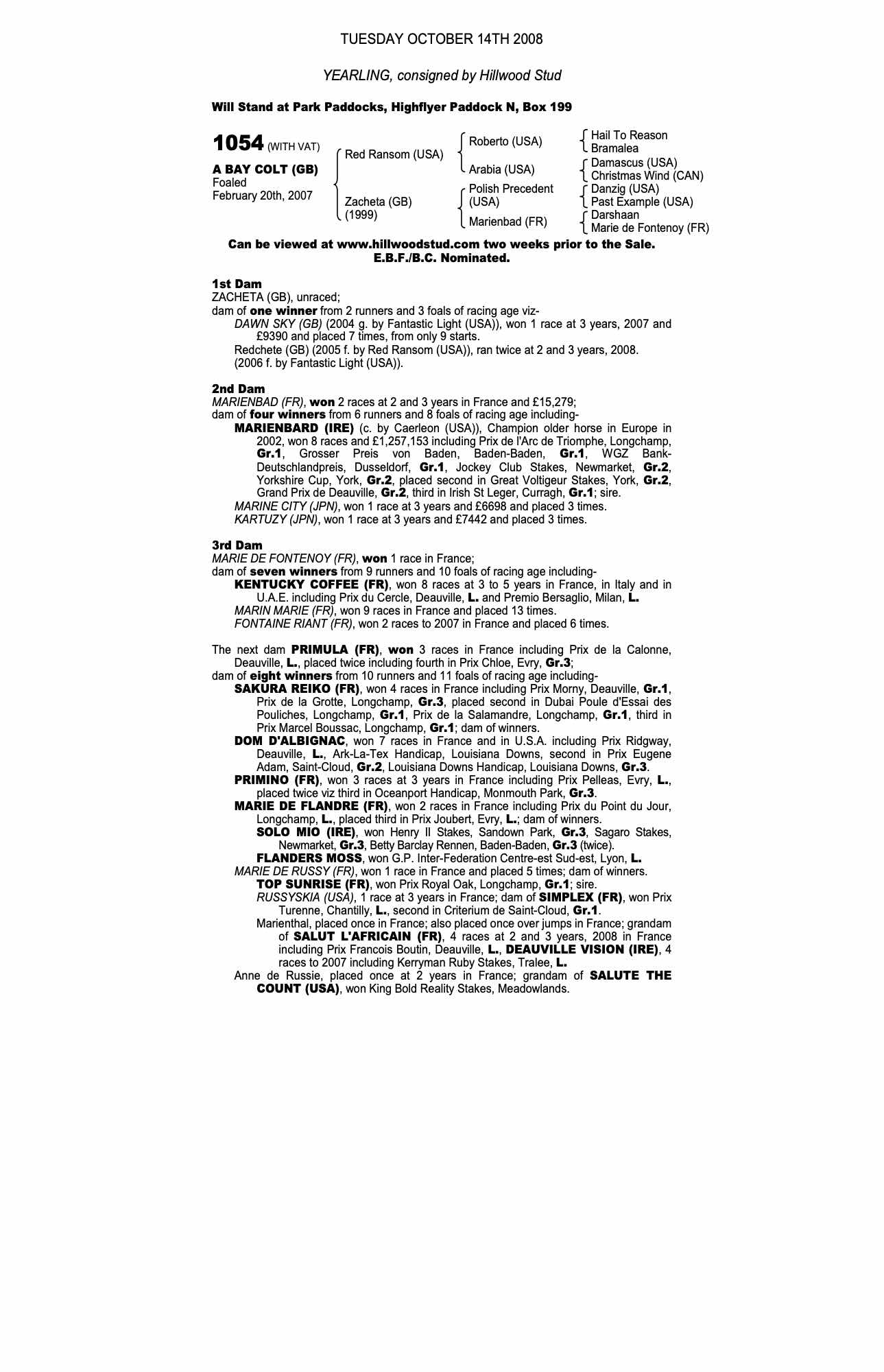 October Yearling Sale, Book 1 2014 lot 139 C. by New Approach (IRE) 2013, Hillwood Stud=>Vendor 115,000 gns