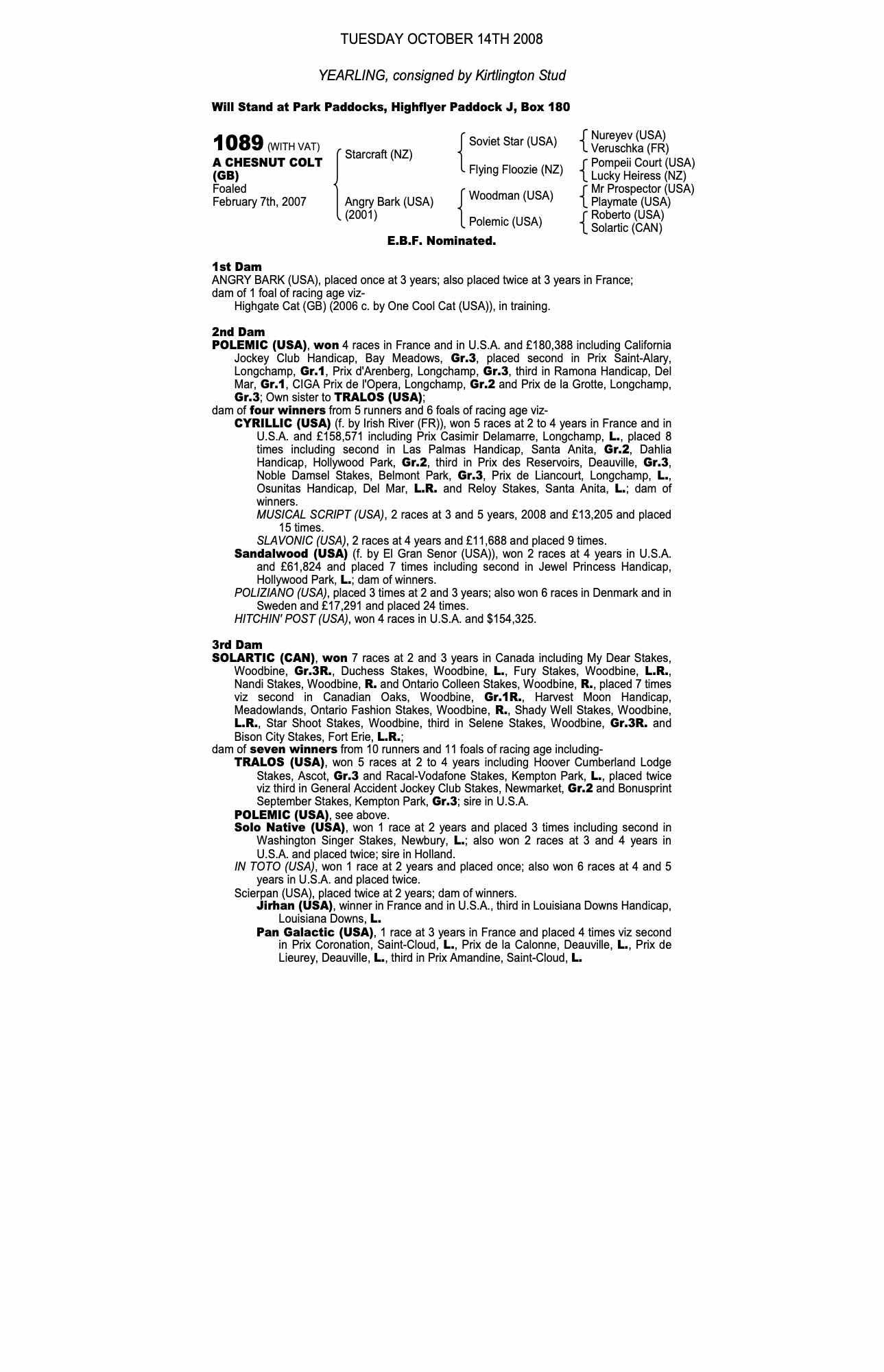 October Yearling Sale, Book 1 2007 lot 551 C. by One Cool Cat (USA) 2006, East Burrow Farm=>R Millman 32,000 gns