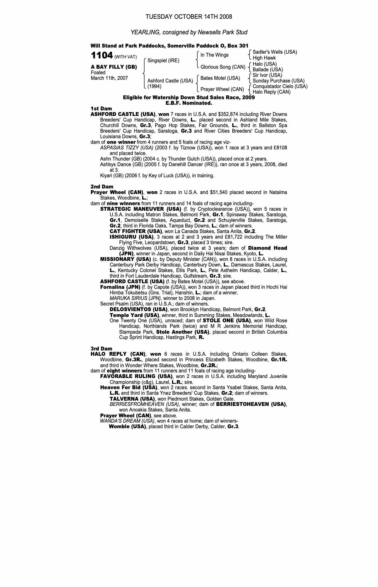 July Sale 2007 lot 495 Ashn Thunder (GB) (C. by Thunder Gulch (USA)), Kingsley House Stables=>AzAg Due Esse 800 gns