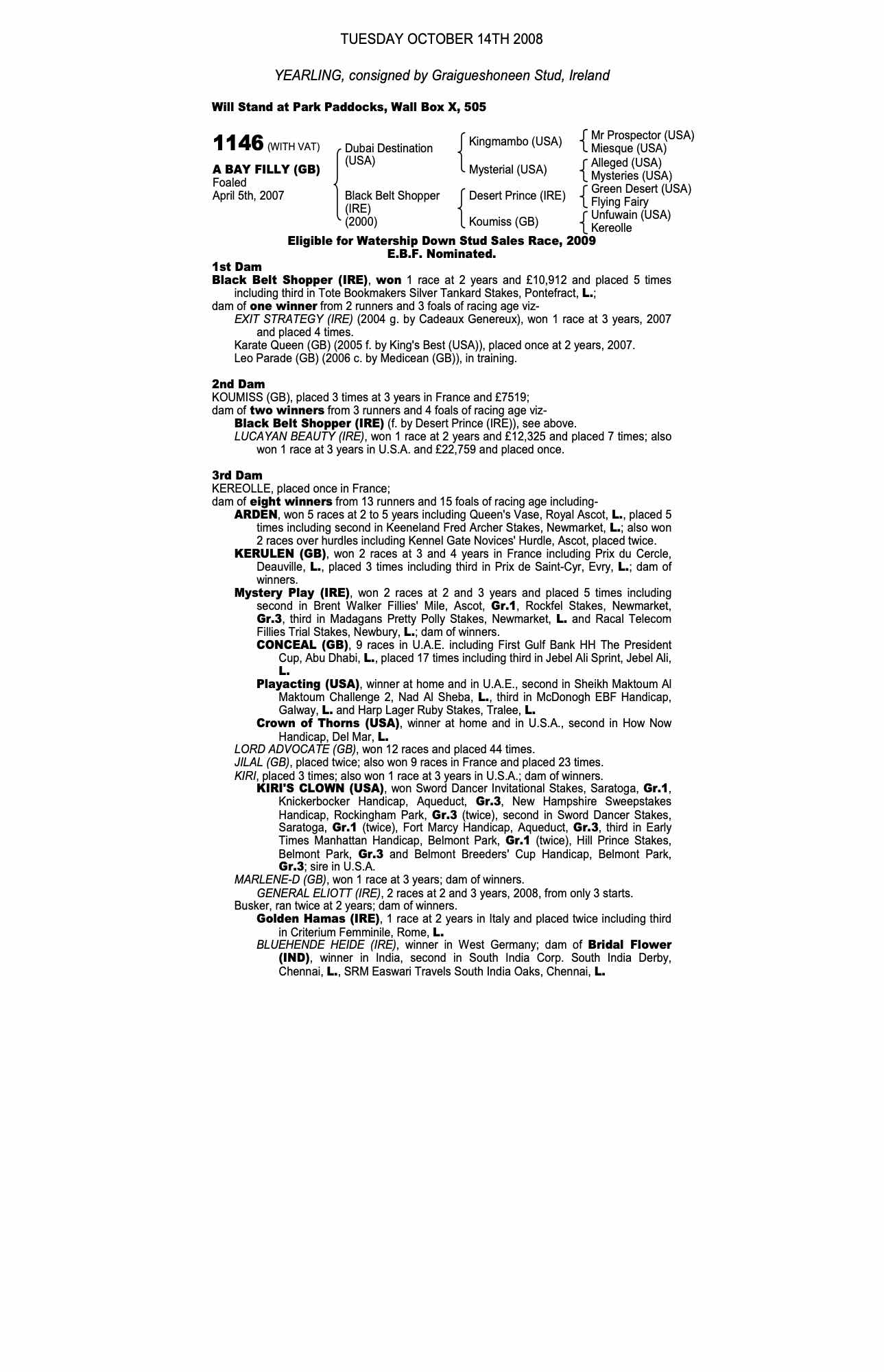 Consignor: Graigueshoneen Stud, Ireland