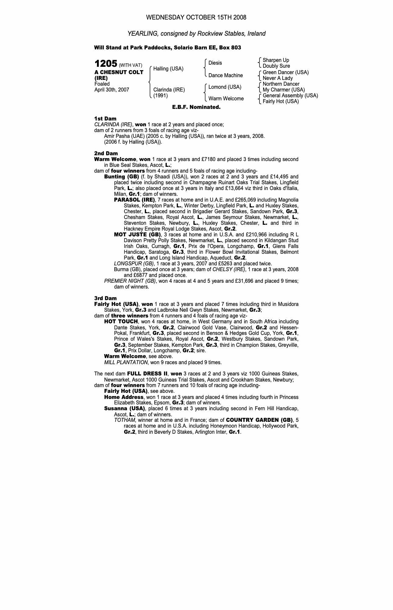 October Yearling Sale, Book 4 2007 lot 2173 F. 2006, Genesis Green Stud=>John Berry 1,200 gns