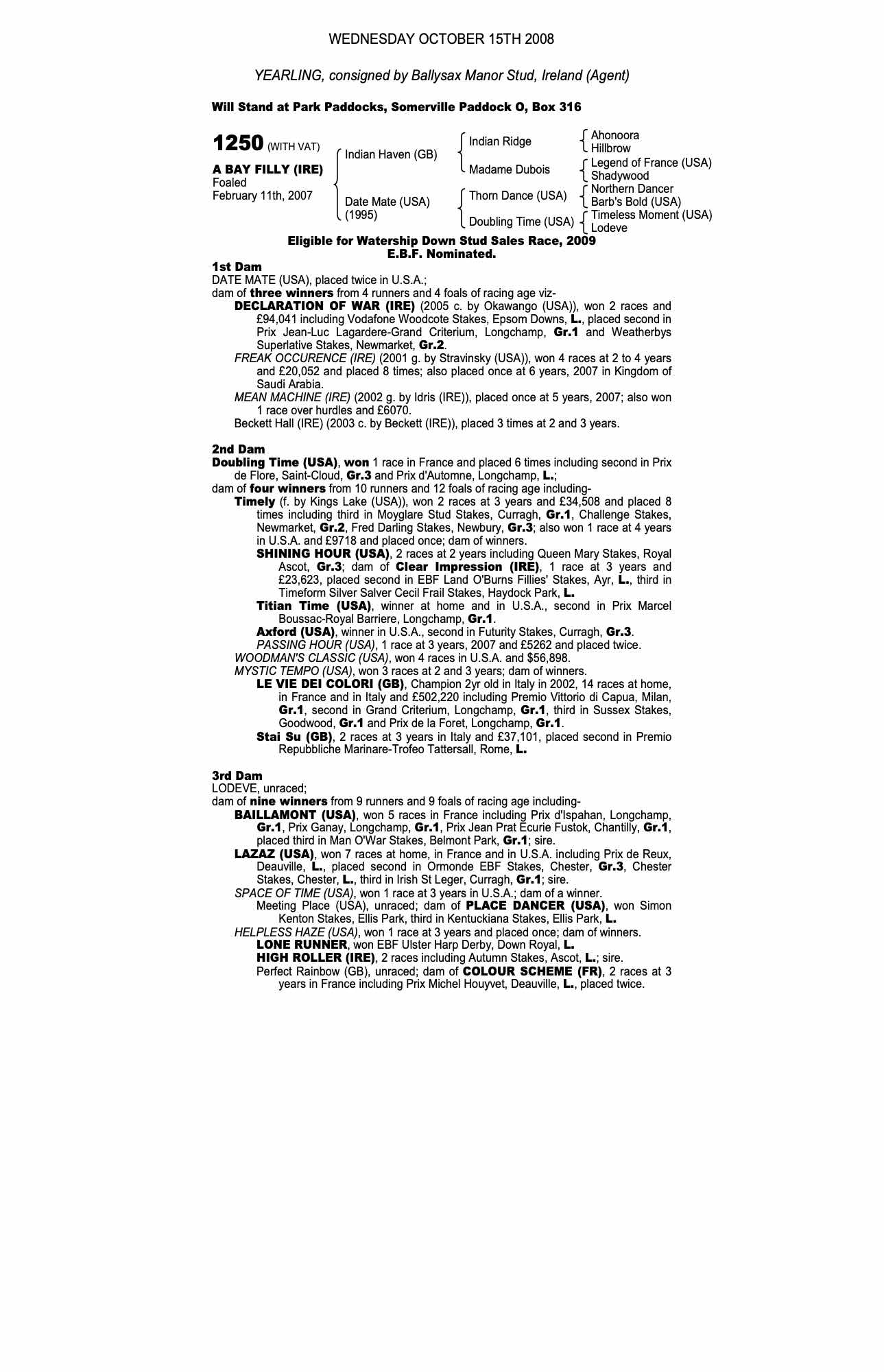 Consignor: Ballysax Manor Stud, Ireland (Agent)