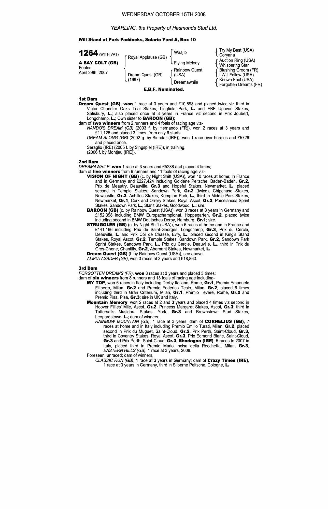 December Mare Sale 2007 lot 2415 Nando's Dream (GB) (M. by Hernando (FR)), Hesmonds Stud=>Lot Not Sold 95,000 gns