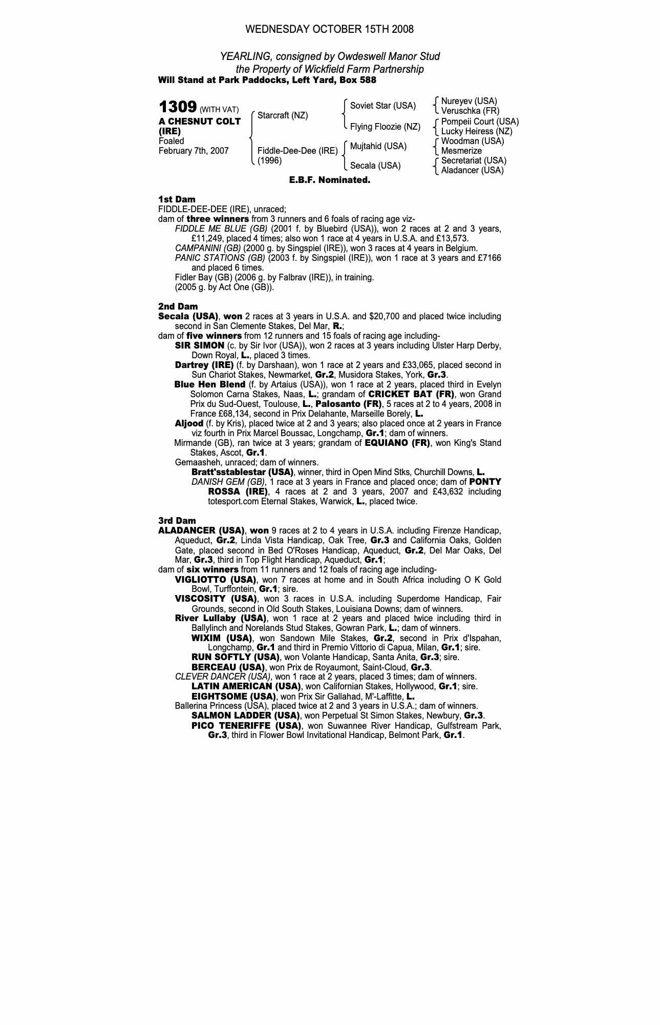 October Yearling Sale, Book 2 2007 lot 1347 C. by Falbrav (IRE) 2006, Owdeswell Manor Stud=>H Candy 3,000 gns