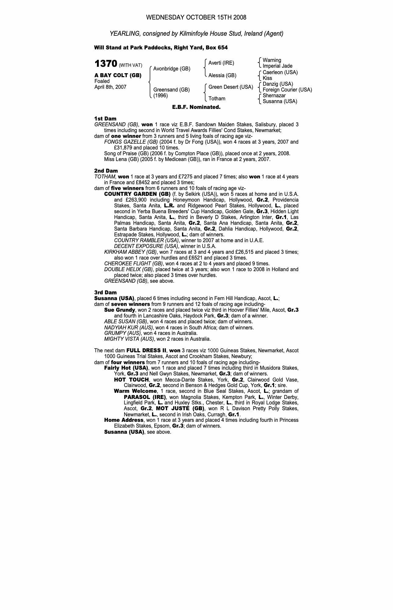 Consignor: Kilminfoyle House Stud, Ireland (Agent)
