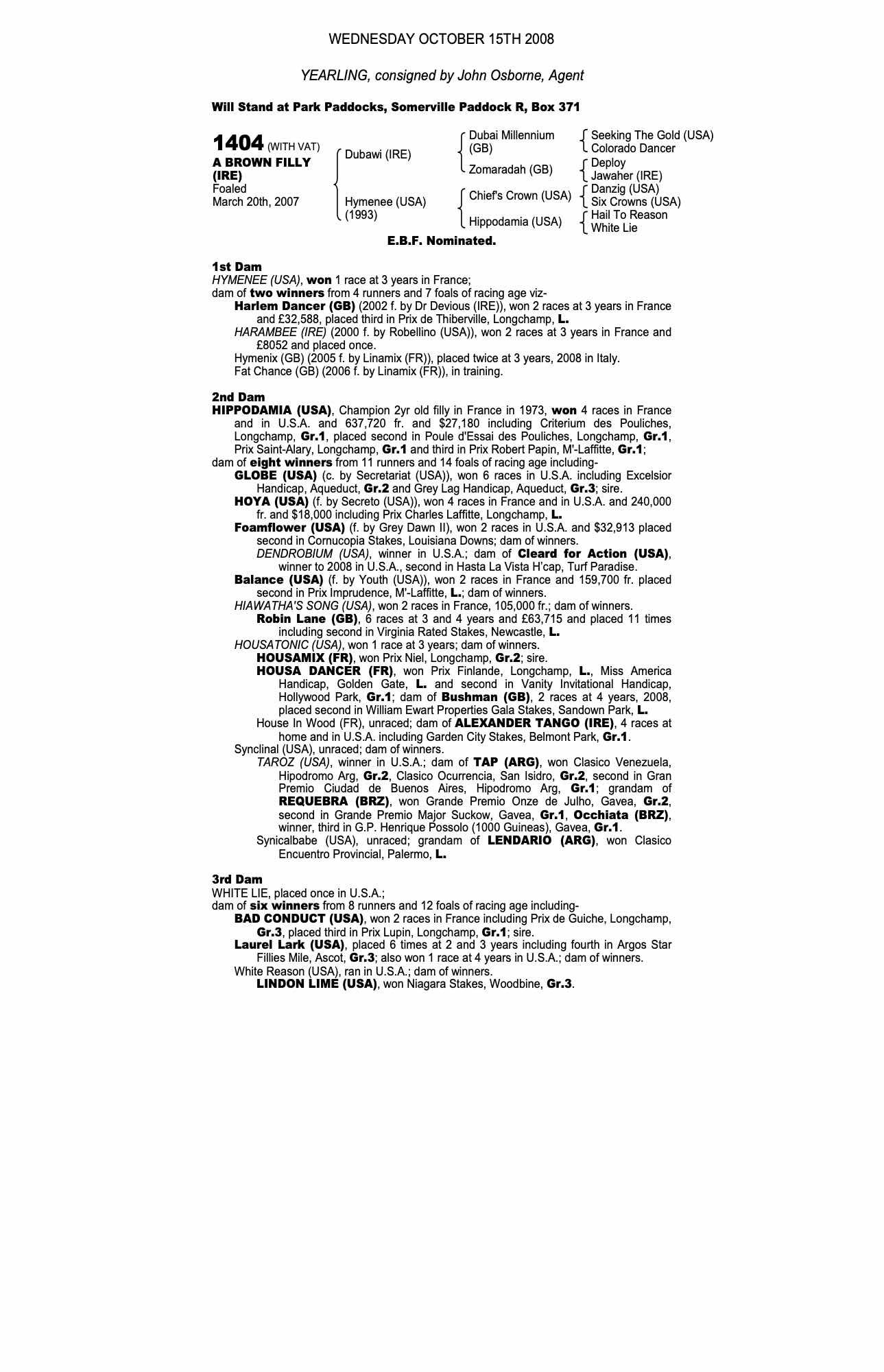 October Yearling Sale, Book 2 2007 lot 768 F. by Linamix (FR) 2006, Bugley Stud=>Dwayne Woods 32,000 gns