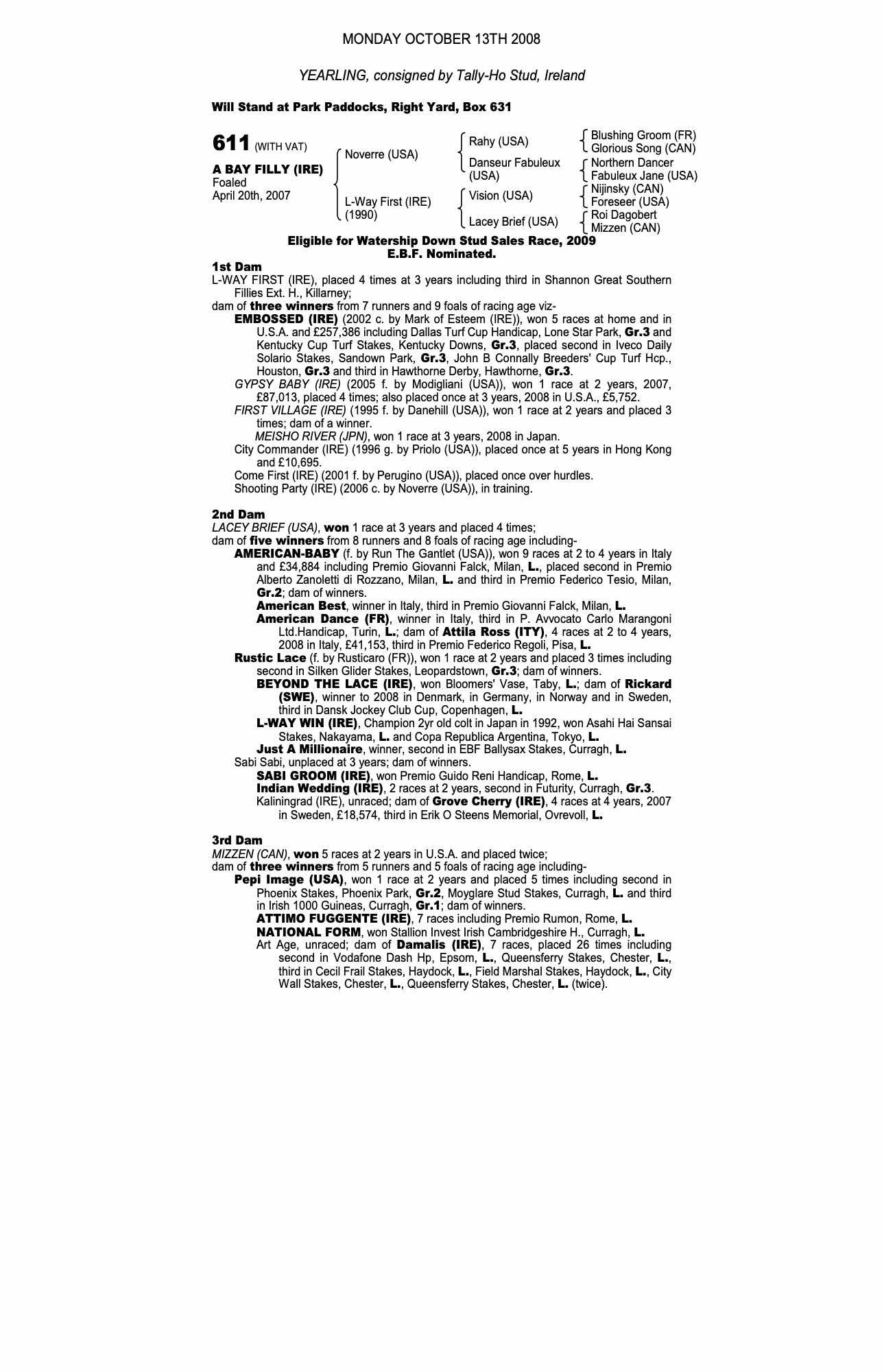 Consignor: Tally-Ho Stud, Ireland