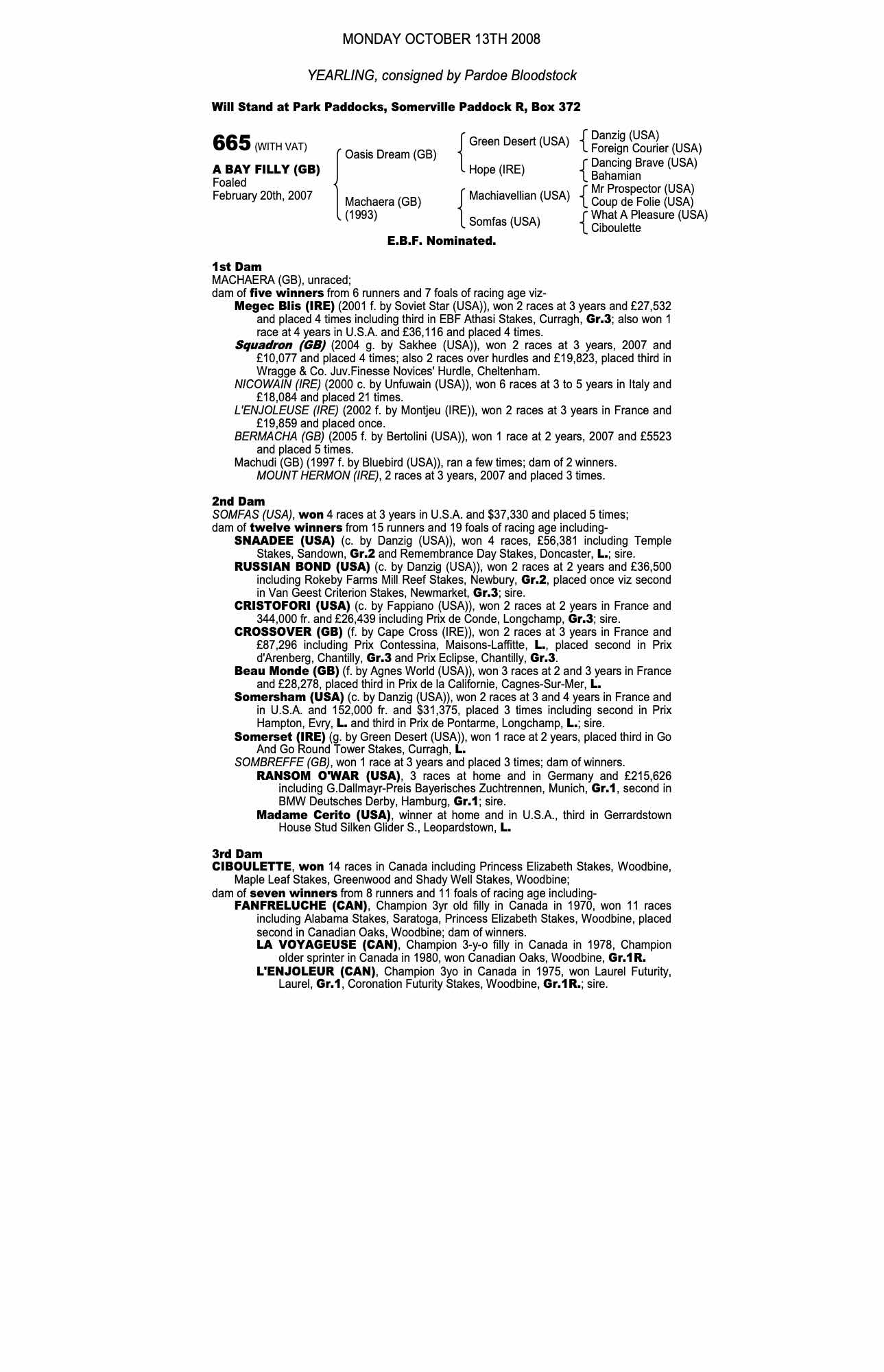July Sale 2000 lot 381 Machudi (GB) (F. by Bluebird (USA)), Woodside Stables=>BBA (UK) 9,000 gns