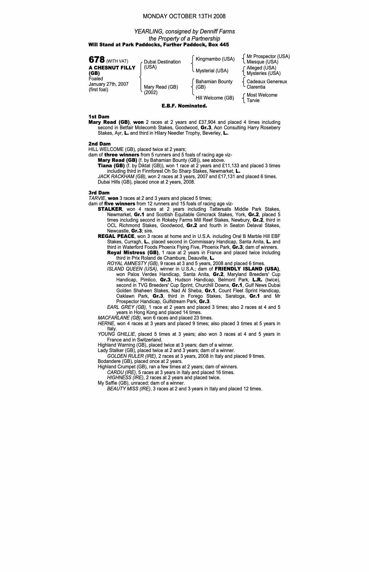 July Sale 2011 lot 179 Dubai Bounty (GB) (F.), Egerton House Stables (G. Butler)=>Vendor 10,000 gns