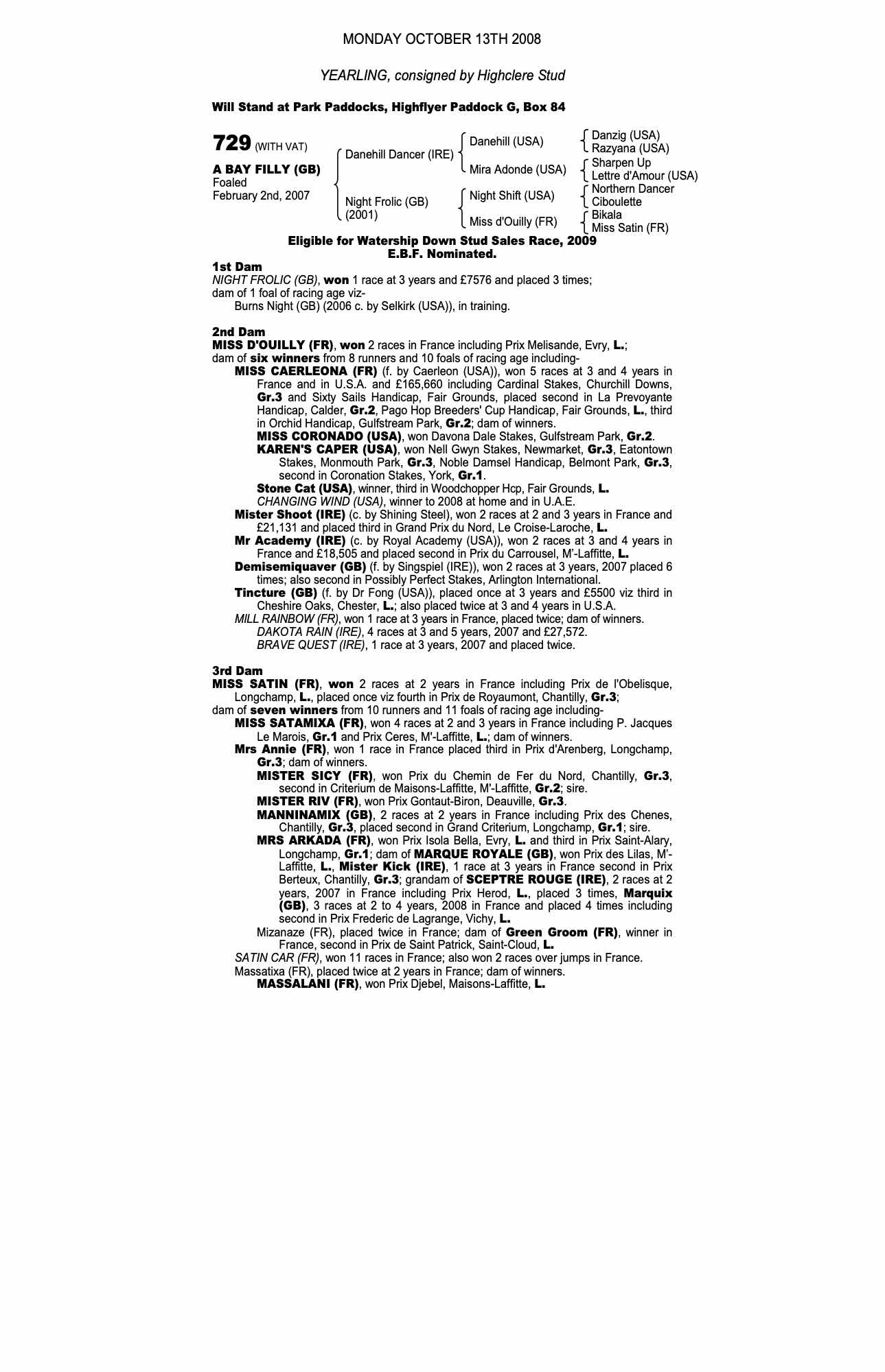 October Yearling Sale, Book 1 2009 lot 620 F. by Cape Cross (IRE) 2008, Highclere Stud=>Blandford Bloodstock 200,000 gns