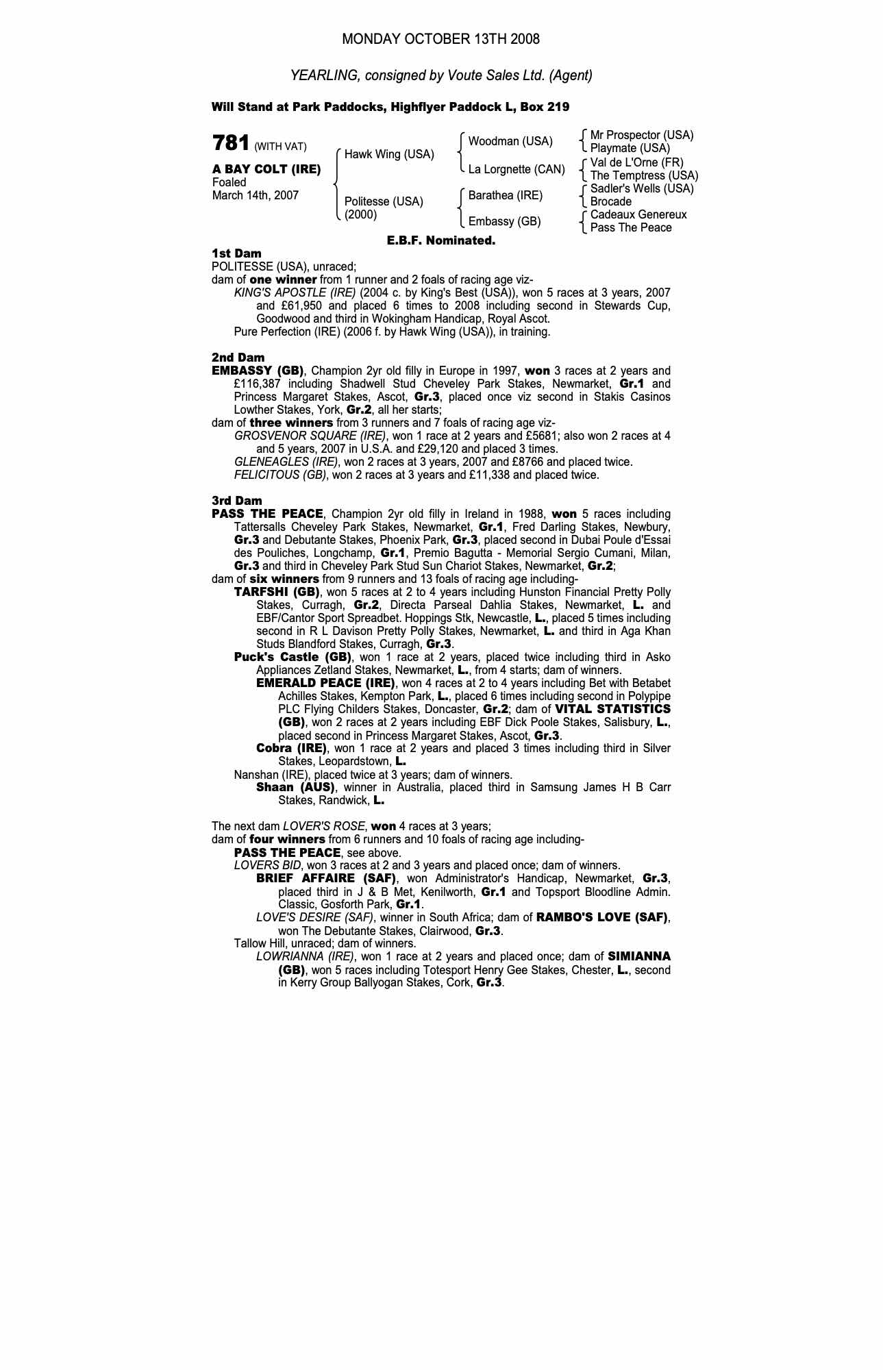 October Yearling Sale, Book 1 2009 lot 663 C. by Cape Cross (IRE) 2008, Voute Sales Ltd. (Agent)=>Vendor 320,000 gns