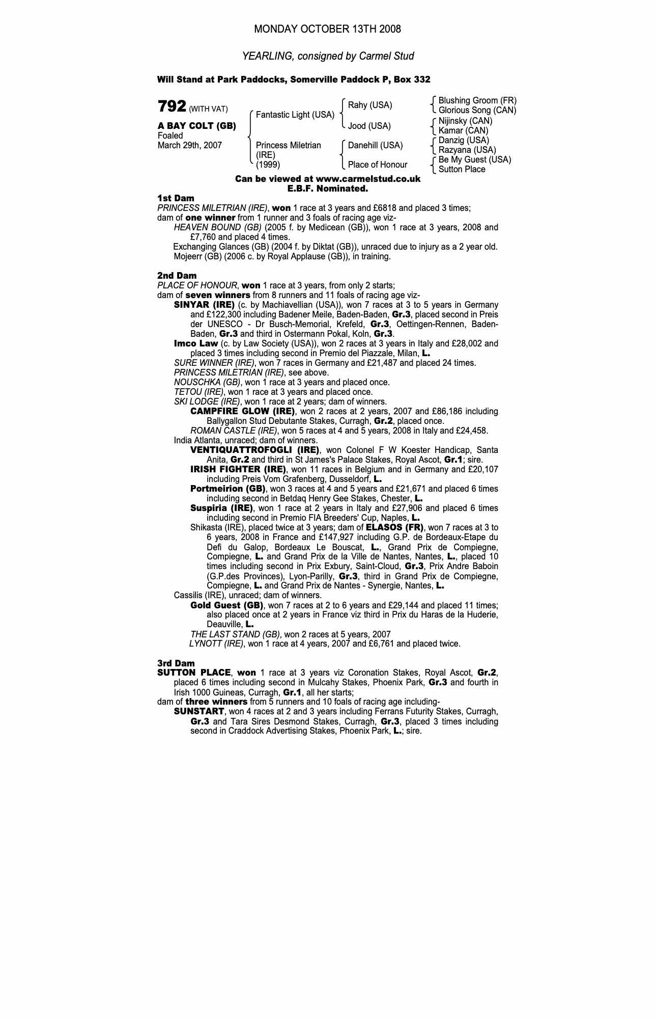 October Yearling Sale, Book 2 2007 lot 960 C. by Royal Applause (GB) 2006, Carmel Stud=>Shadwell Estate Company 80,000 gns