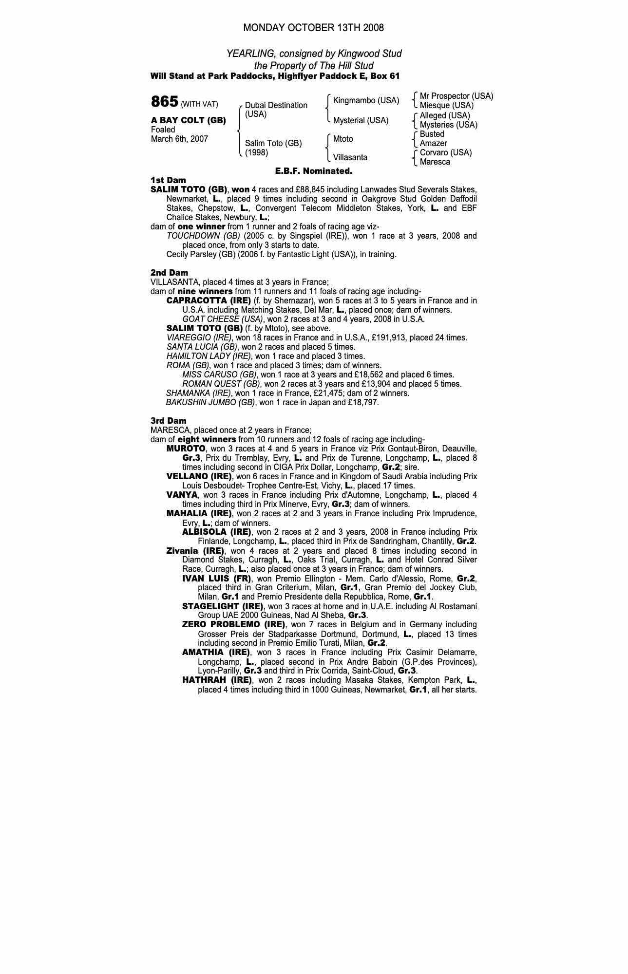 October Yearling Sale, Book 1 2007 lot 348 F. by Fantastic Light (USA) 2006, Kingwood Stud=>Vendor 10,000 gns