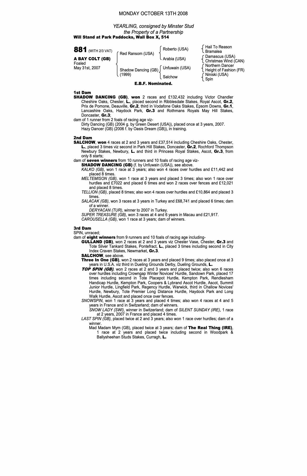 October Yearling Sale, Book 1 2007 lot 371 F. by Oasis Dream (GB) 2006, Minster Stud=>Lot Not Sold 90,000 gns