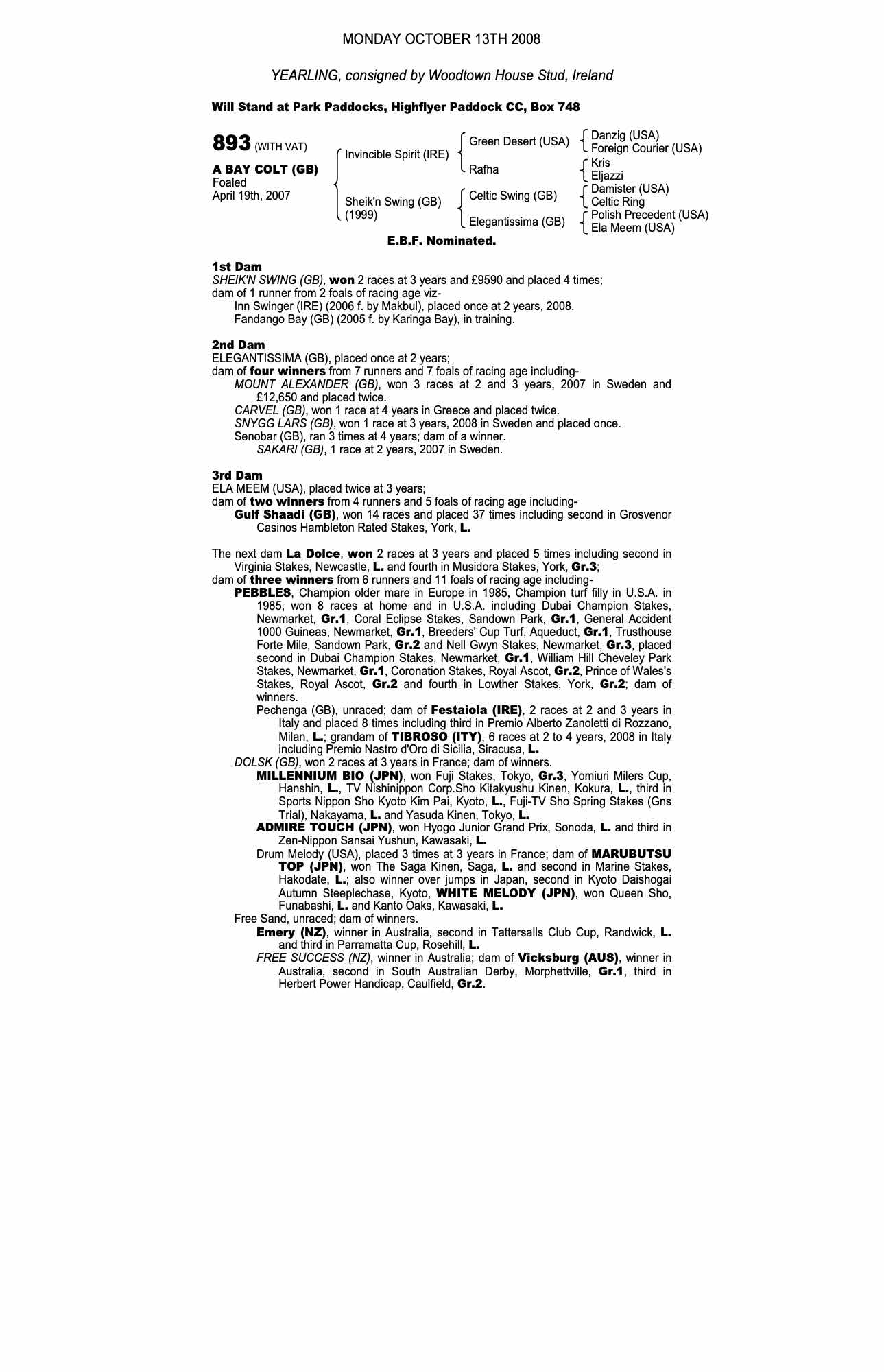 Consignor: Woodtown House Stud, Ireland