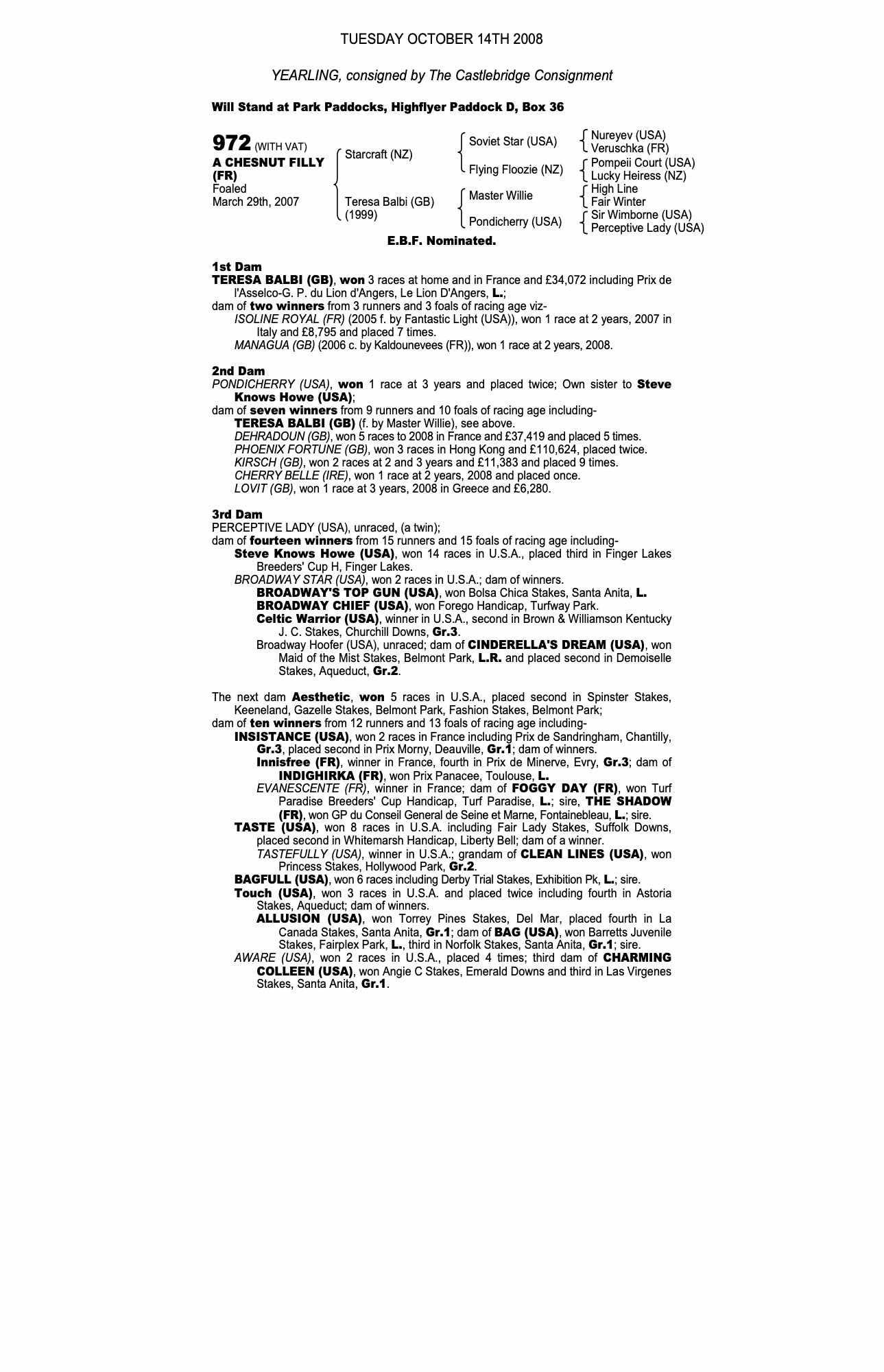 October Yearling Sale, Book 2 2007 lot 1089 C. by Kaldounevees (FR) 2006, Lynn Lodge Stud, Ireland=>Gill Richardson 50,000 gns
