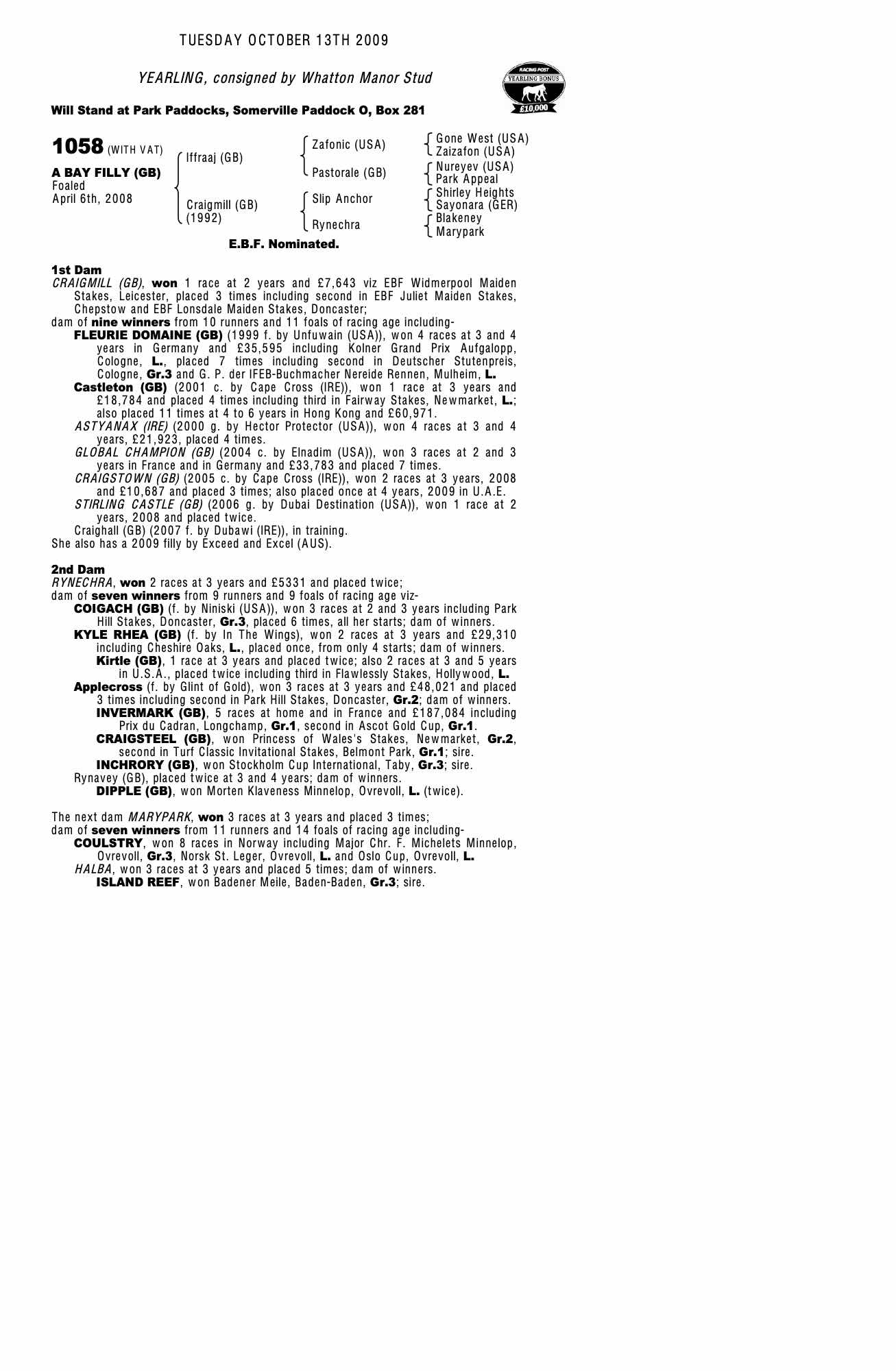 October Yearling Sale, Book 2 2008 lot 1219 F. by Dubawi (IRE) 2007, Whatton Manor Stud=>Charles Wyatt 55,000 gns