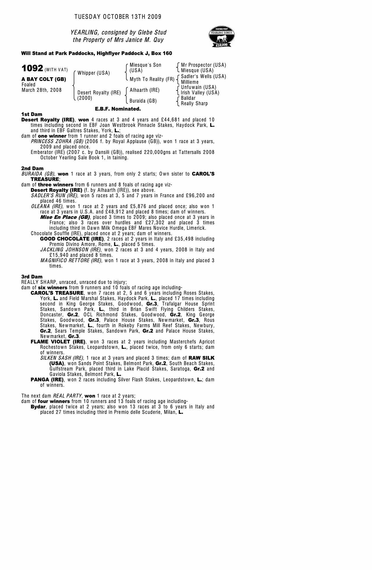 July Sale 2009 lot 453 Princess Zohra (GB) (F. by Royal Applause (GB)), Ed Dunlop Racing Ltd.=>S.A. Bloodstock 5,500 gns