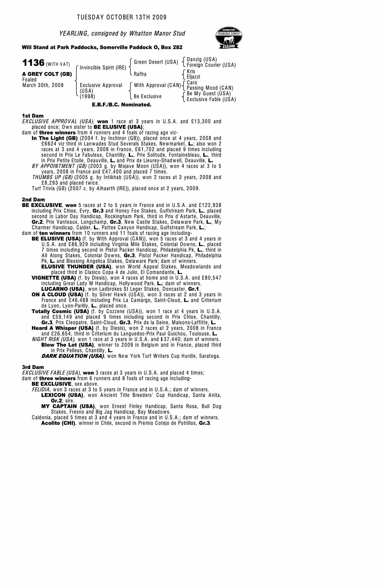 October Yearling Sale, Book 2 2010 lot 1046 F. by Notnowcato (GB) 2009, Whatton Manor Stud=>George Moore 23,000 gns