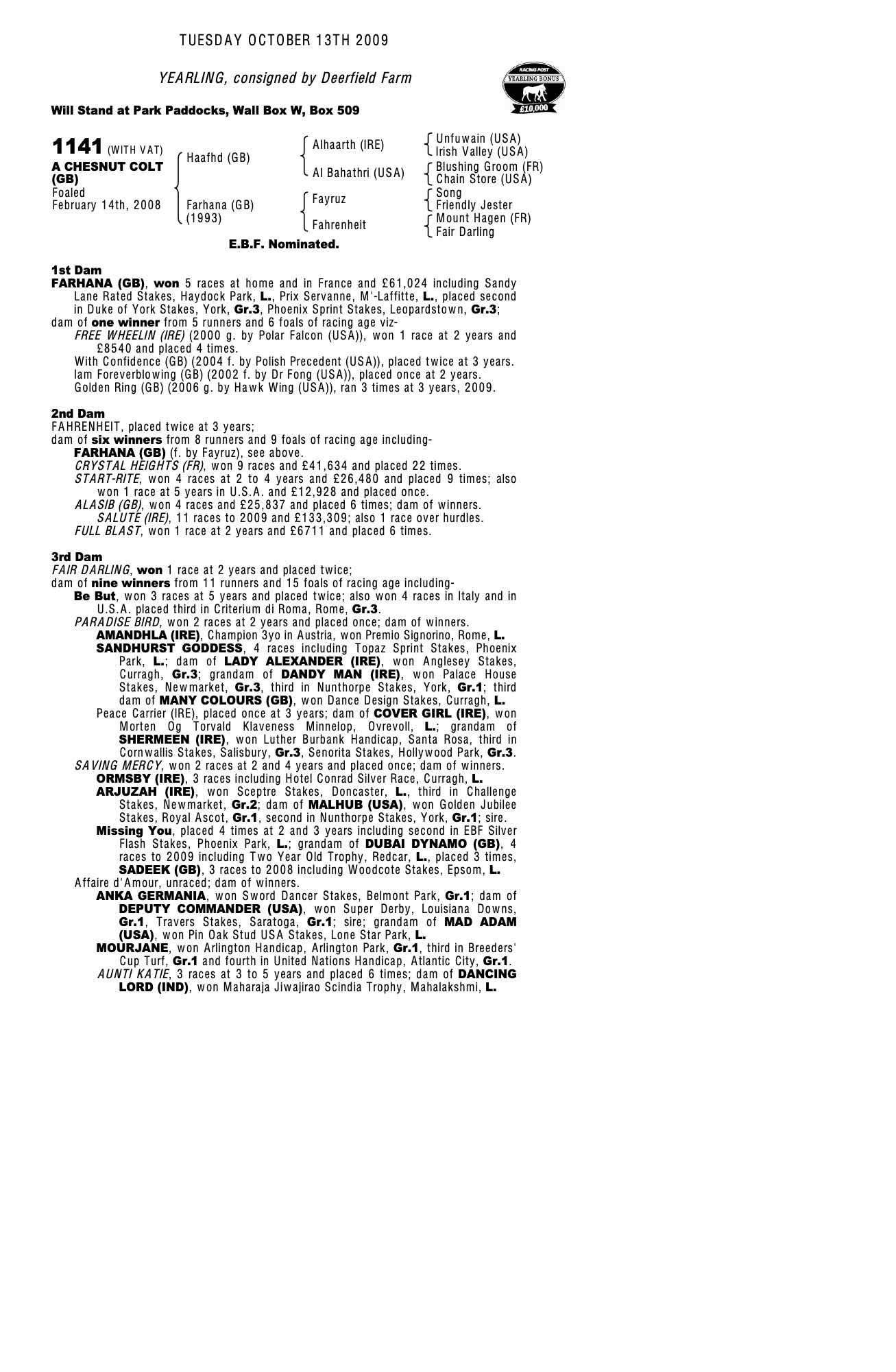 October Yearling Sale, Book 2 2005 lot 1035 F. by Polish Precedent (USA) 2004, Deerfield Farm=>Suzanne Roberts 10,000 gns