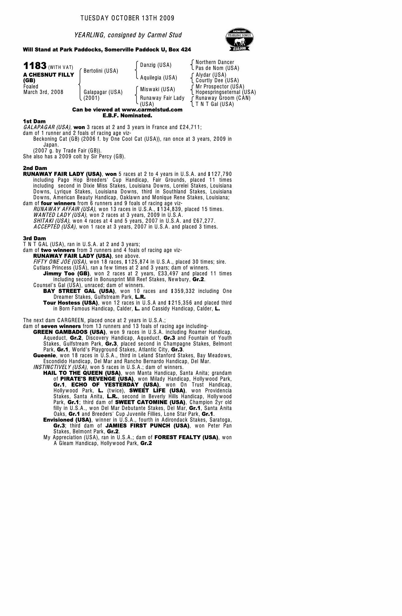 October Yearling Sale, Book 2 2013 lot 1309 C. by Bahamian Bounty (GB) 2012, Carmel Stud=>Shadwell Estate Company 150,000 gns