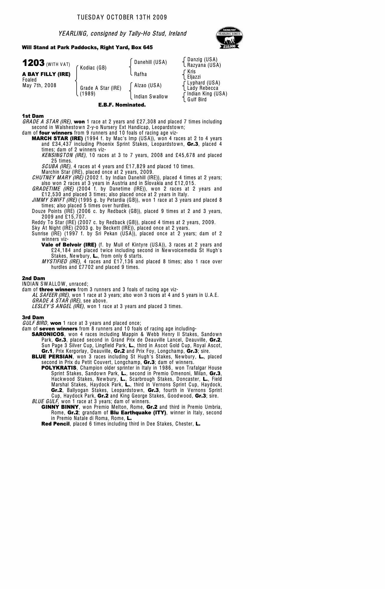 Consignor: Tally-Ho Stud, Ireland