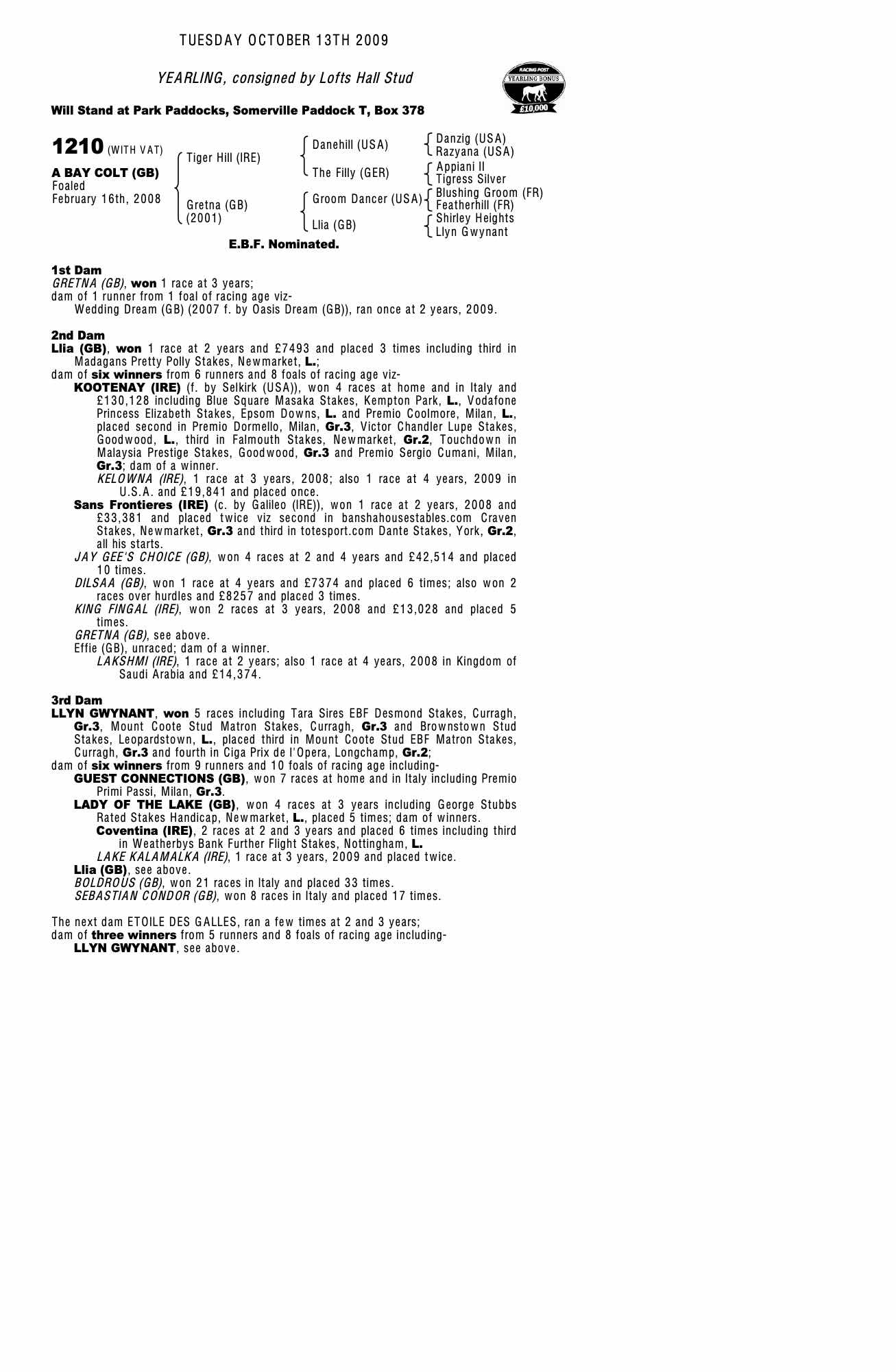 Guineas Breeze Up Sale 2009 lot 108 F. by Oasis Dream (GB) 2007, Mocklershill, Ireland=>Stephen Hillen Bloodstock 26,000 gns