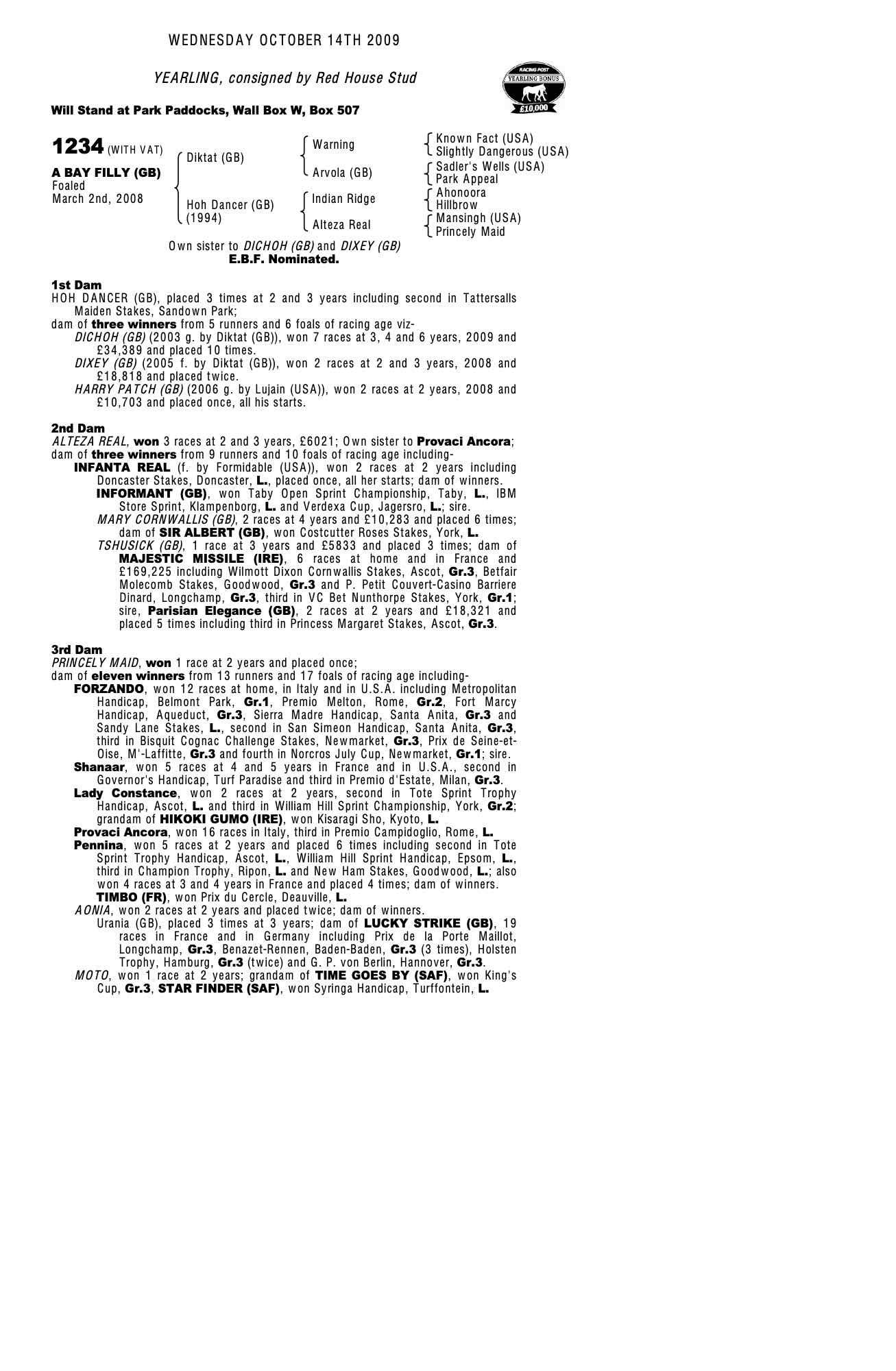 October Yearling Sale 2000 lot 103 F. by Petong , Red House Stud=>BBA (UK) 13,000 gns