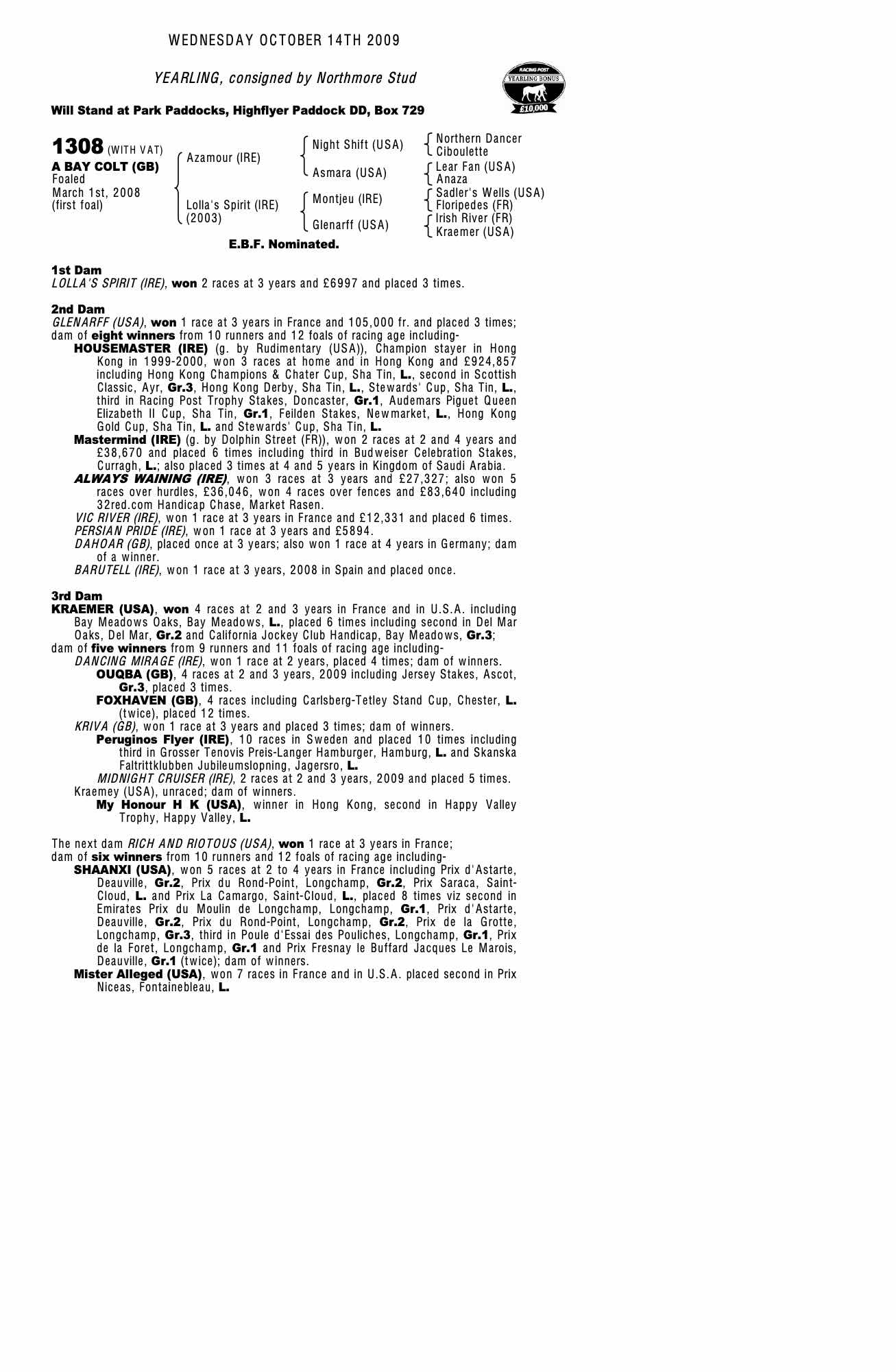Consignor: Northmore Stud