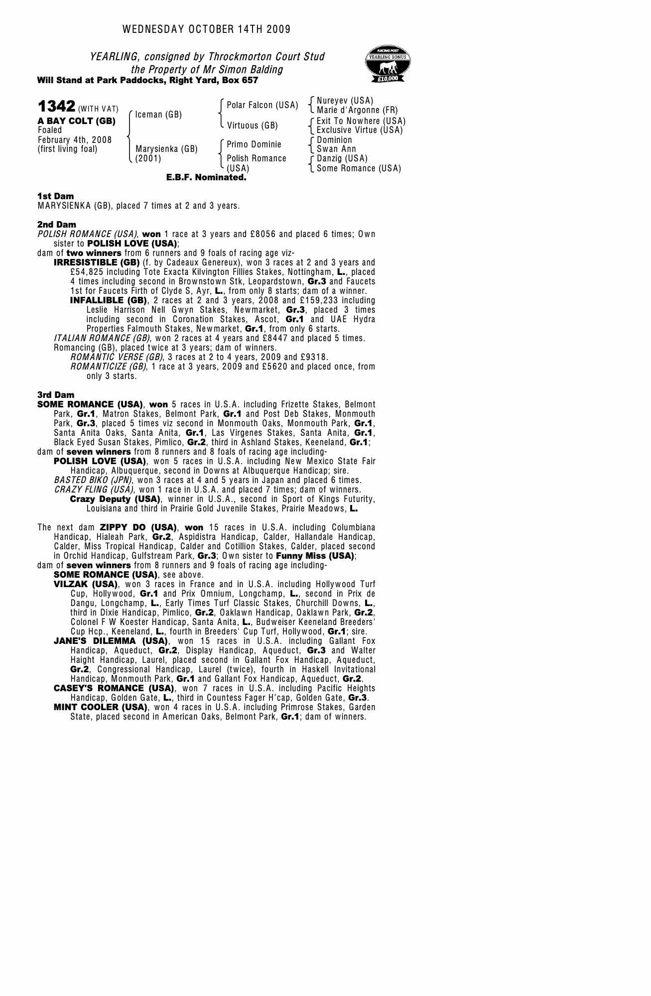 Consignor: Throckmorton Court Stud