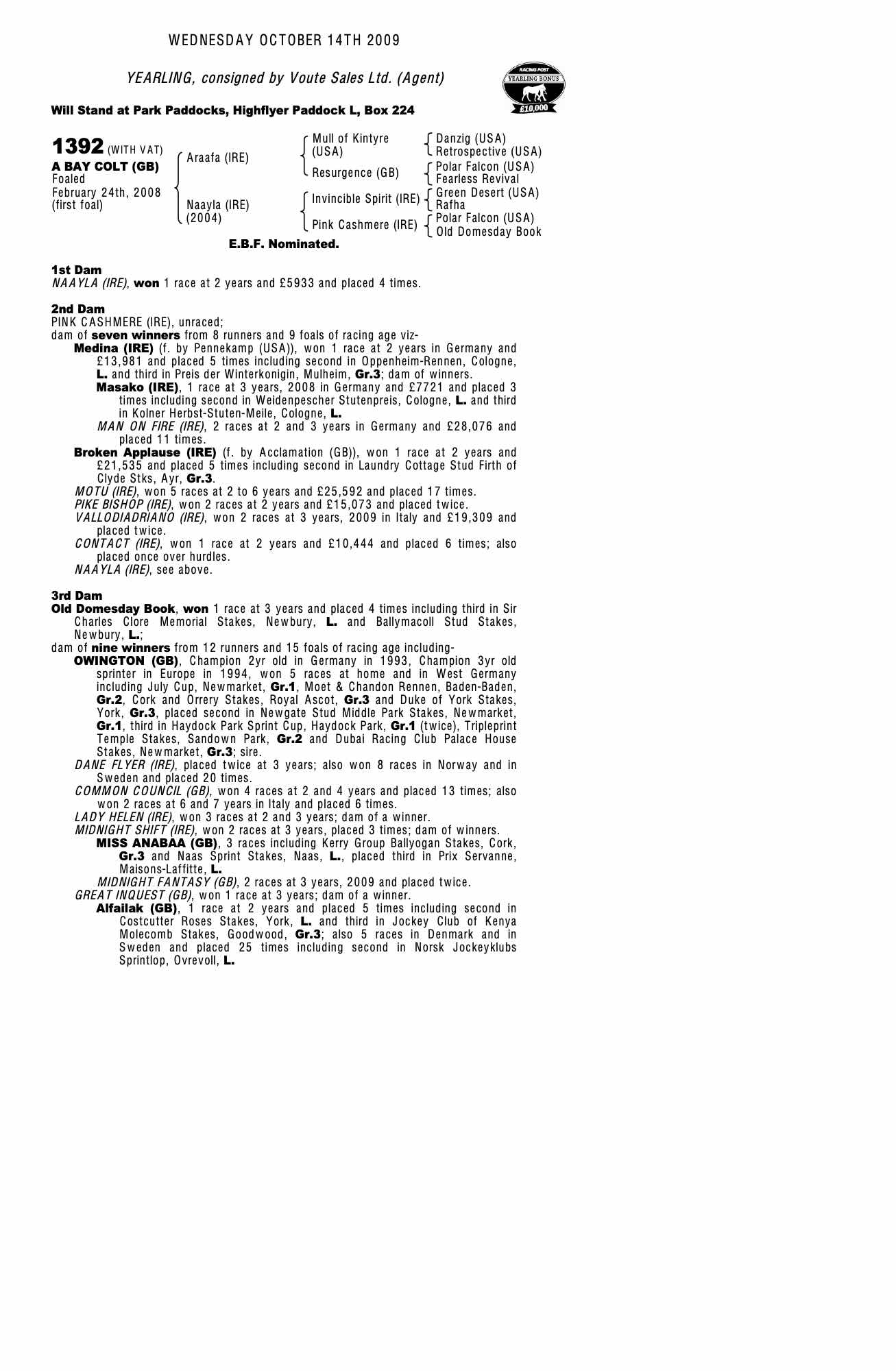 October Yearling Sale, Book 3 2014 lot 1602 F. by Bahamian Bounty (GB) 2013, Houghton Bloodstock=>NP Littmoden 11,000 gns