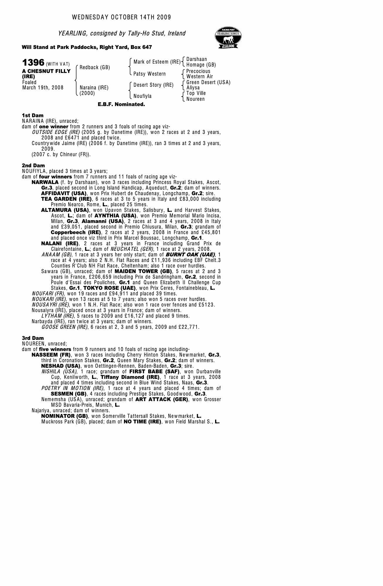 Consignor: Tally-Ho Stud, Ireland