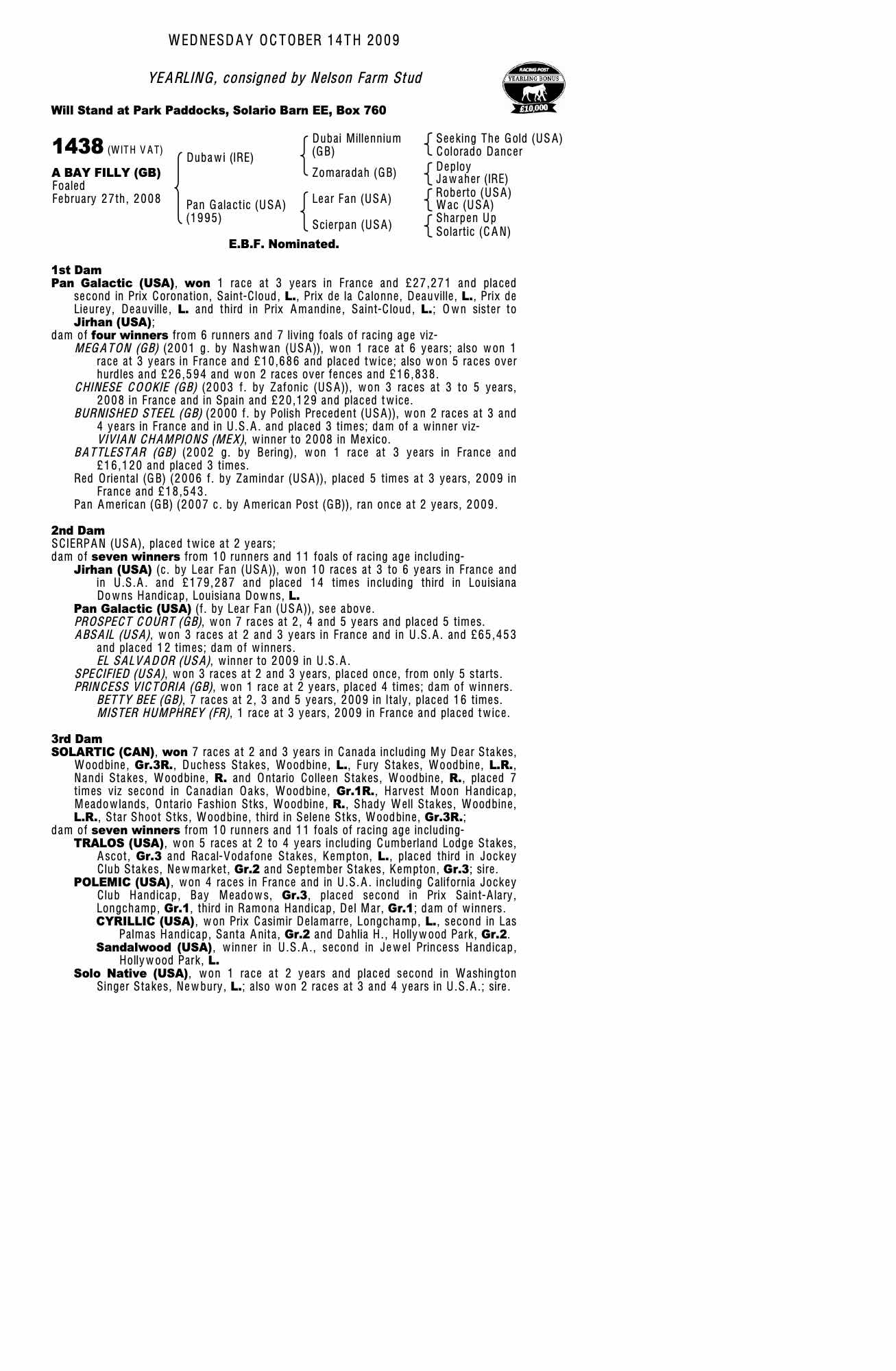 October Yearling Sale, Book 1 2010 lot 488 C. by Tiger Hill (IRE) 2009, Catridge Farm Stud=>D Elsworth 20,000 gns