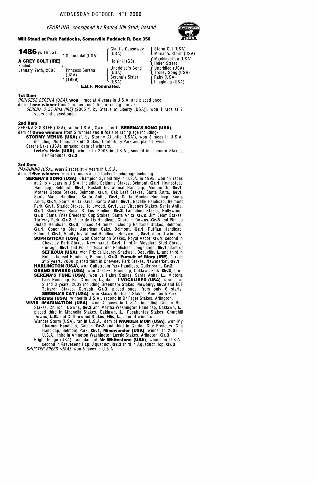 October Yearling Sale Book 1, 2015 lot 392 F. 2014, Roundhill Stud, Ireland=>Vendor 300,000 gns